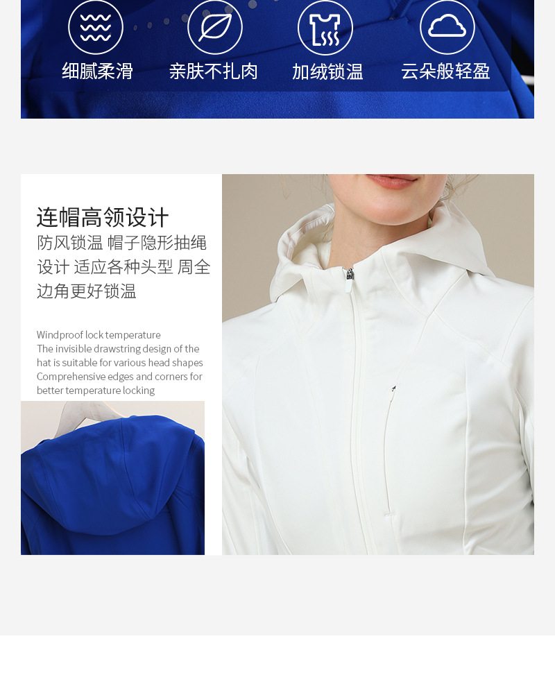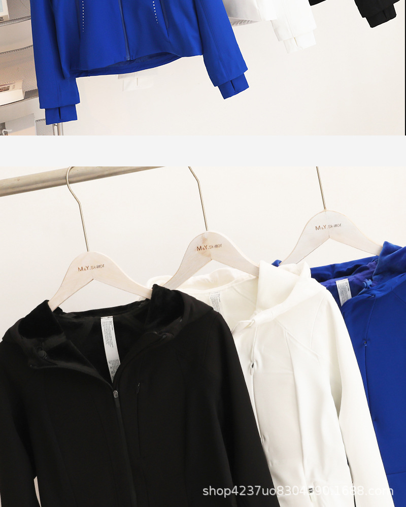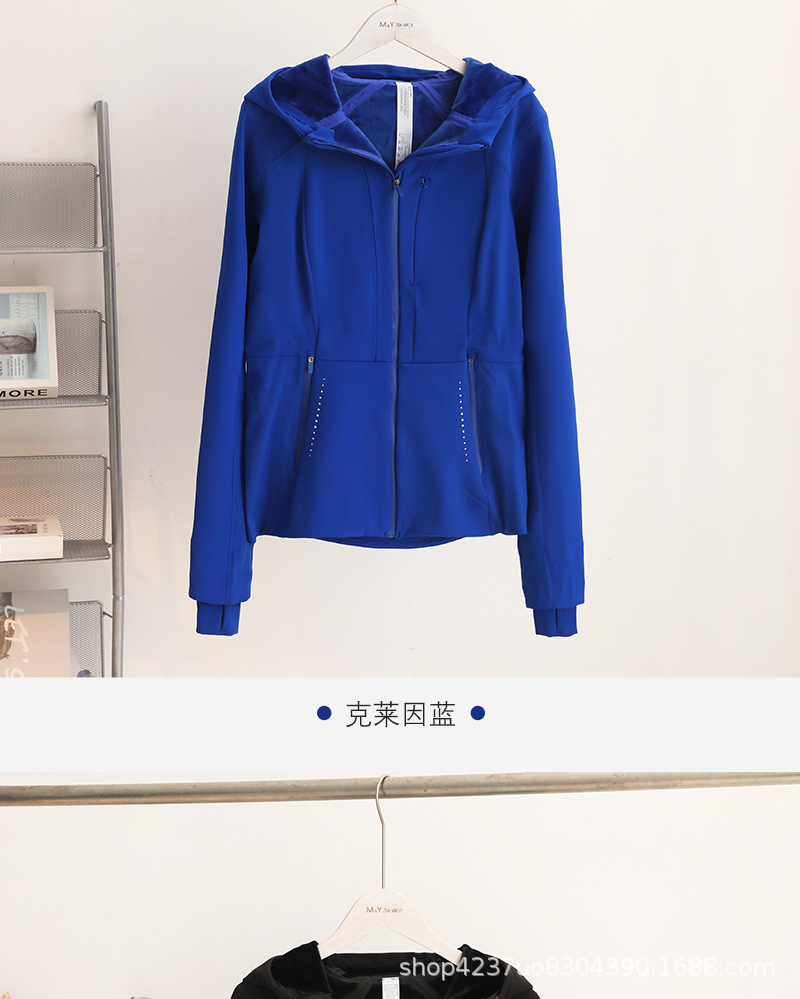부드러운 쉘 재킷 재킷 여성 가을과 겨울 후드 기모 허리 슬림 야외 스포츠 방수 재킷을 입은 룰루