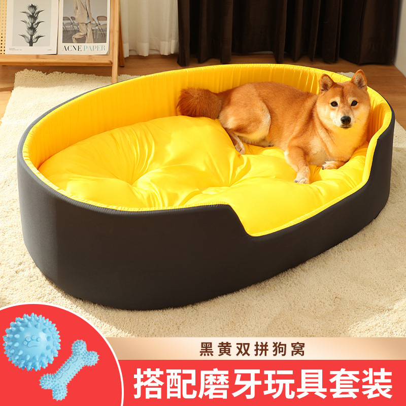 • 깊은 잠자는 입체 둥지 + 강아지 장난감 (부드러운 솜 패드 포함) - 노란색과 검은색 둥지