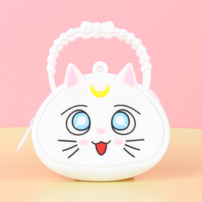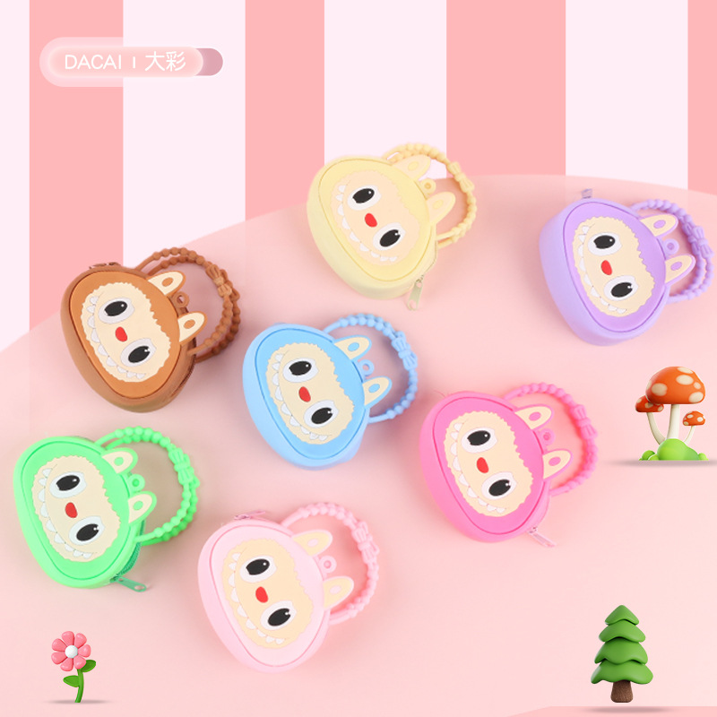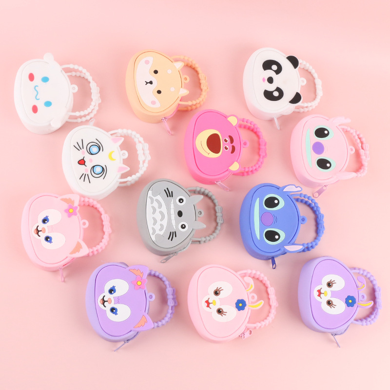 만화 실리콘 지퍼 동전 지갑 휴대용 키 체인 마카롱 컬러 미니 동전 가방 어린이 보관 가방 선물