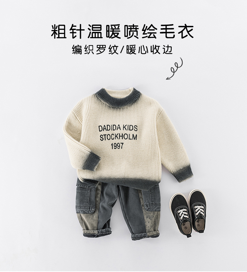 男童毛衣冬季新款儿童加厚毛线衣小童保暖套头衫冬装宝宝长袖毛衫