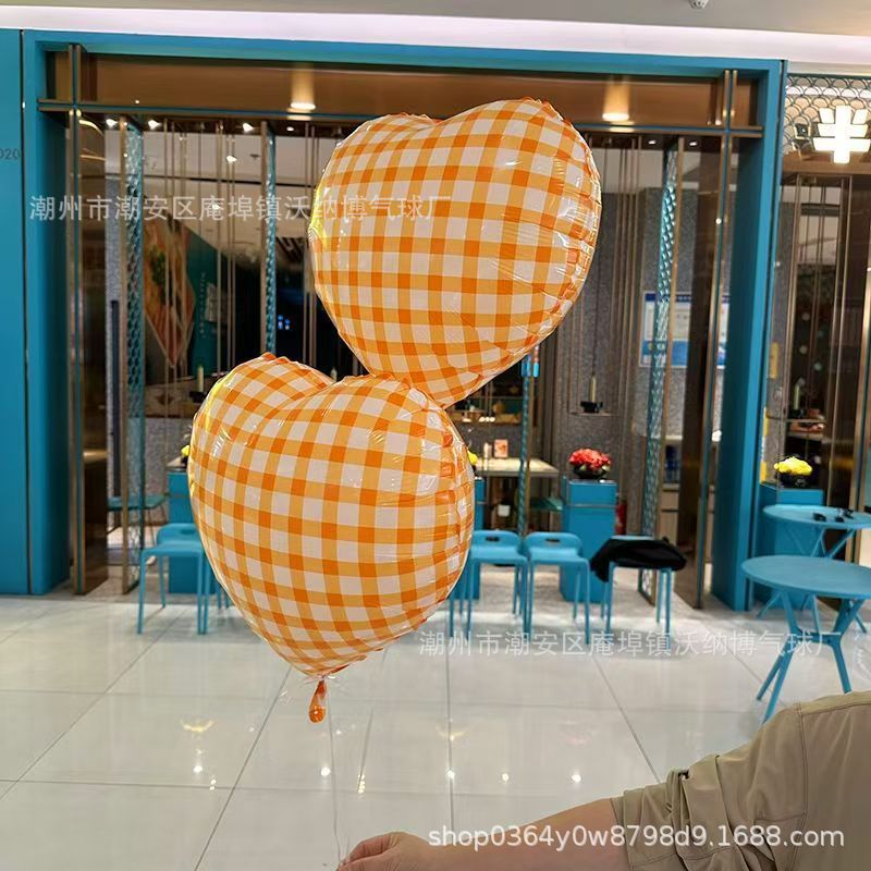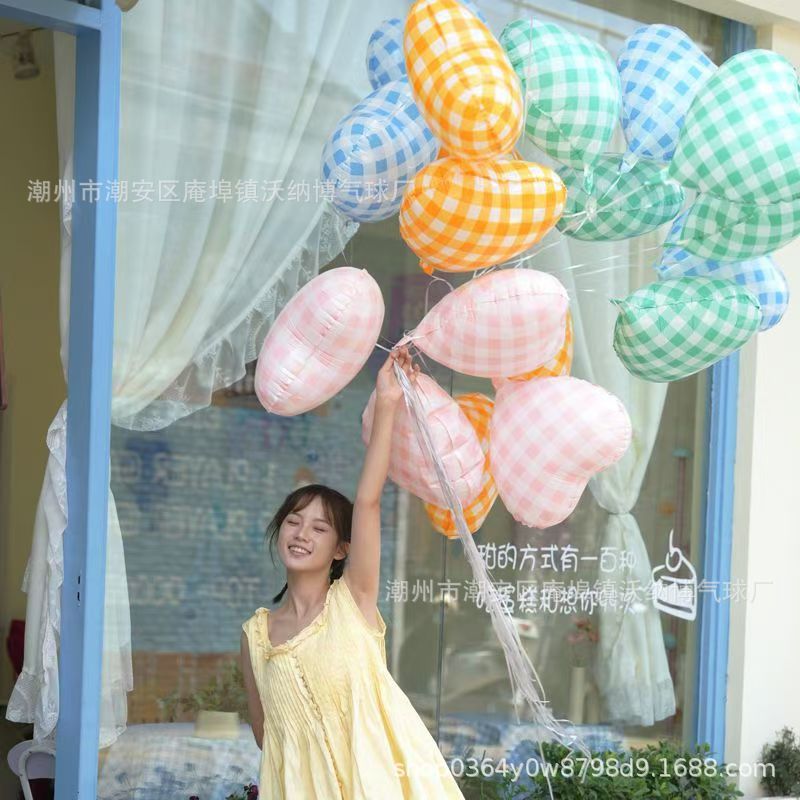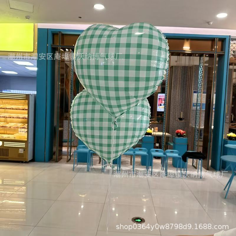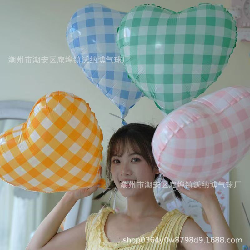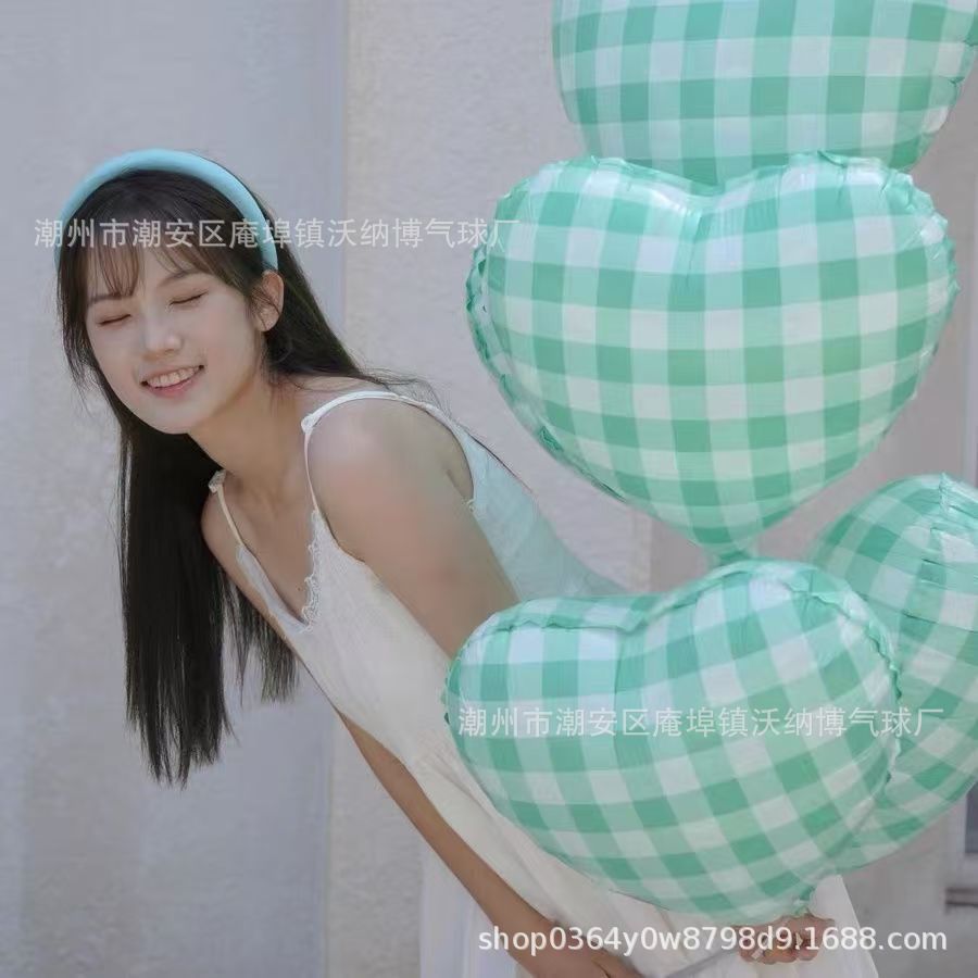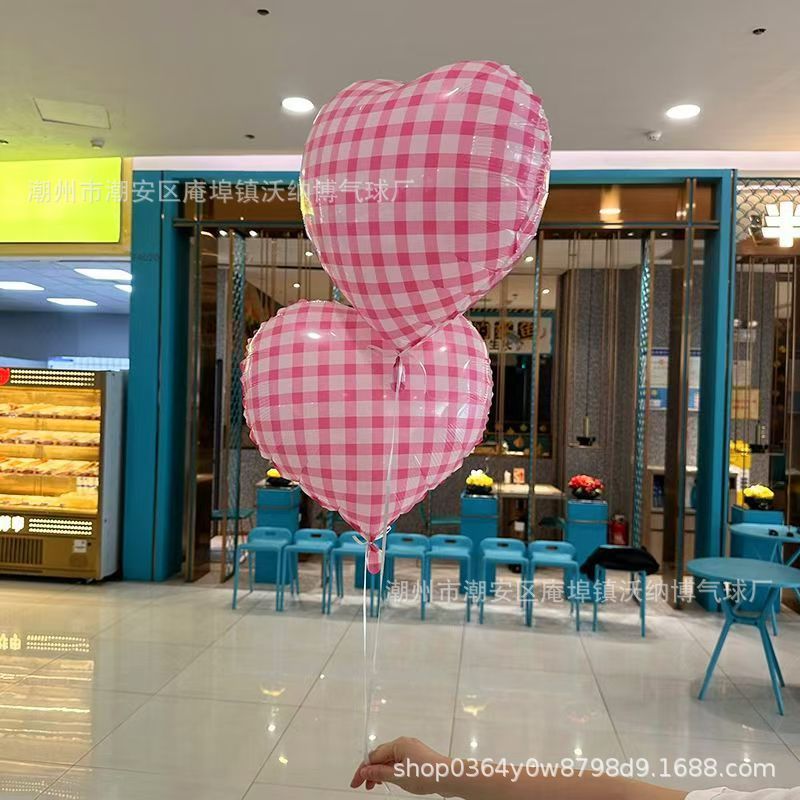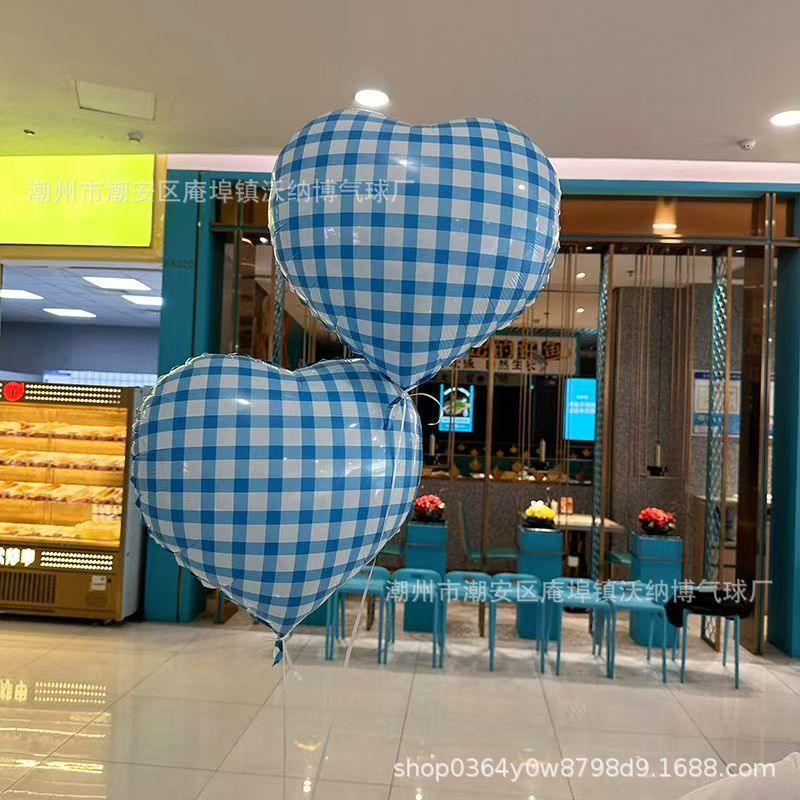 Ins 사이버 레드 블루와 화이트 체크 무늬 러브 풍선 생일 사진 사진 웨딩 파티 장식 알루미늄 필름 풍선스토어 가기