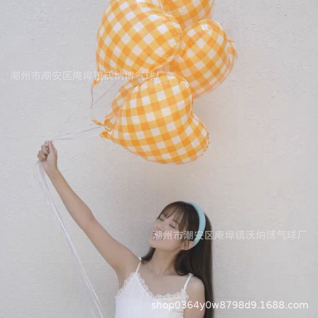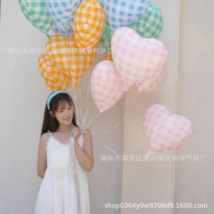 Ins 사이버 레드 블루와 화이트 체크 무늬 러브 풍선 생일 사진 사진 웨딩 파티 장식 알루미늄 필름 풍선
