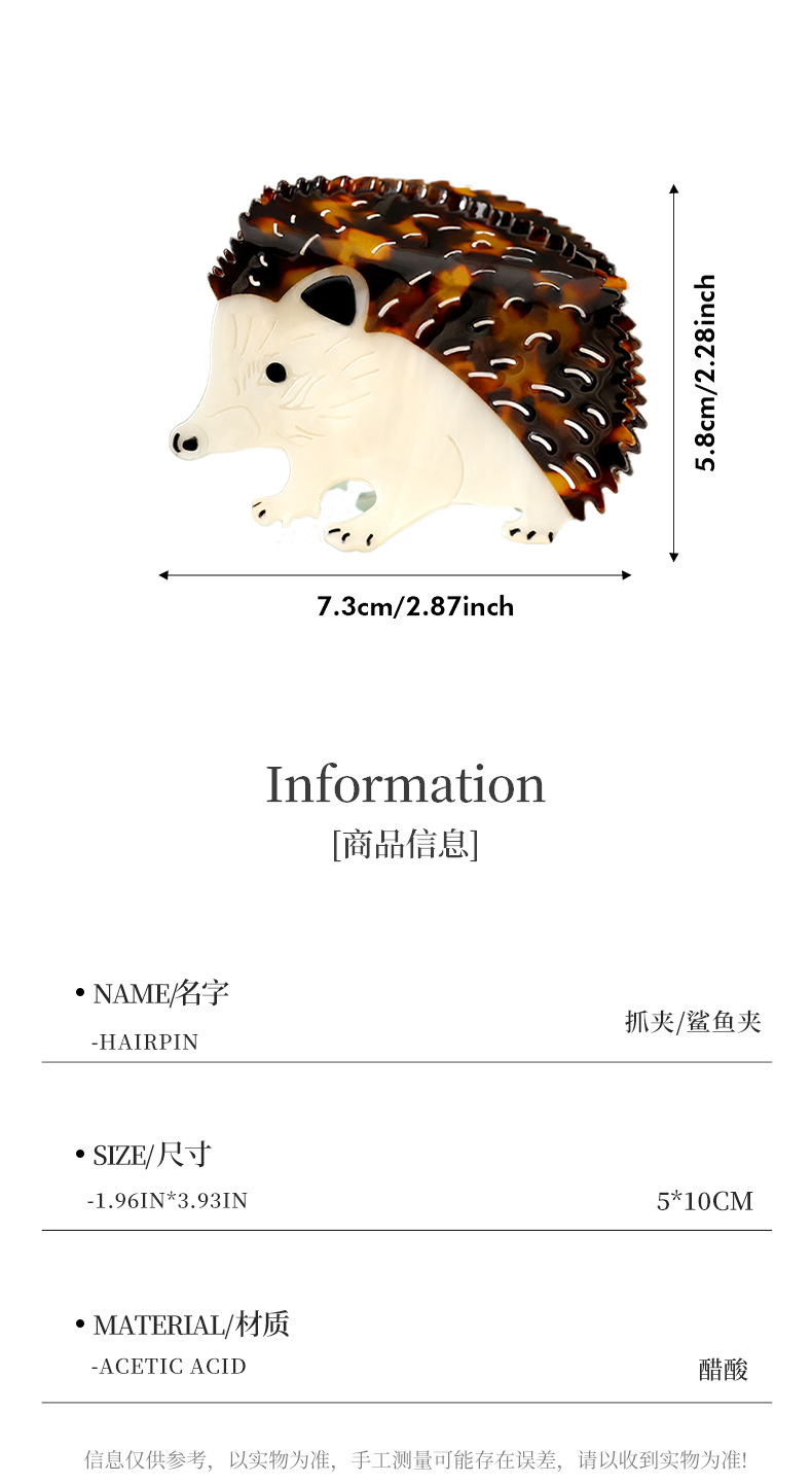 Min Chen 새로운 창조적 인 고슴도치 Acetic Acid Grab 클립 오리지널 수제 헤어핀 올매치 상어 클립 헤드웨어 여성스토어 가기