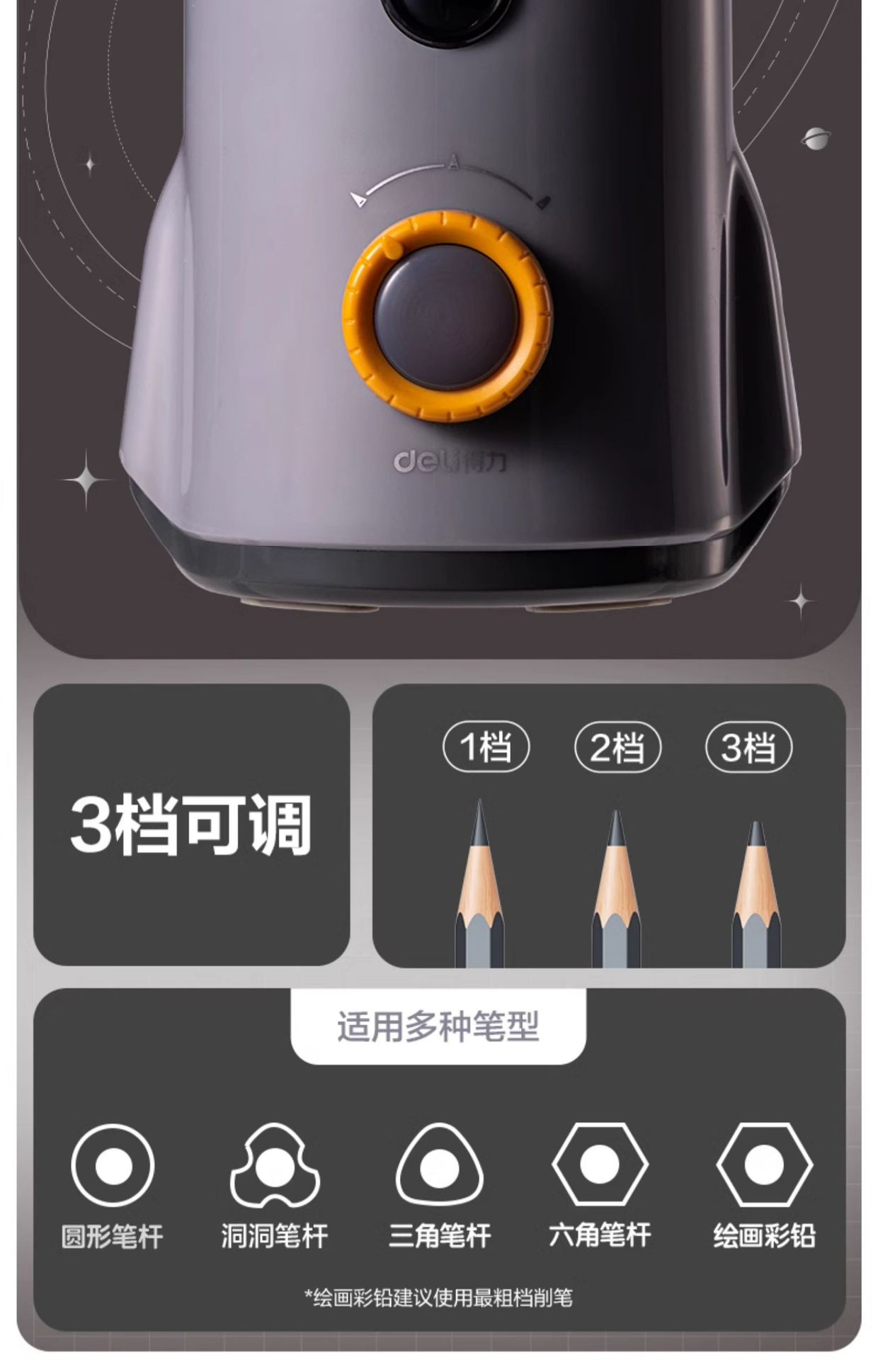 Deli VA7 초등학생을위한 자동 연필 깎이 연필 깎기 전기 연필 깎기 자동 연필 깎기