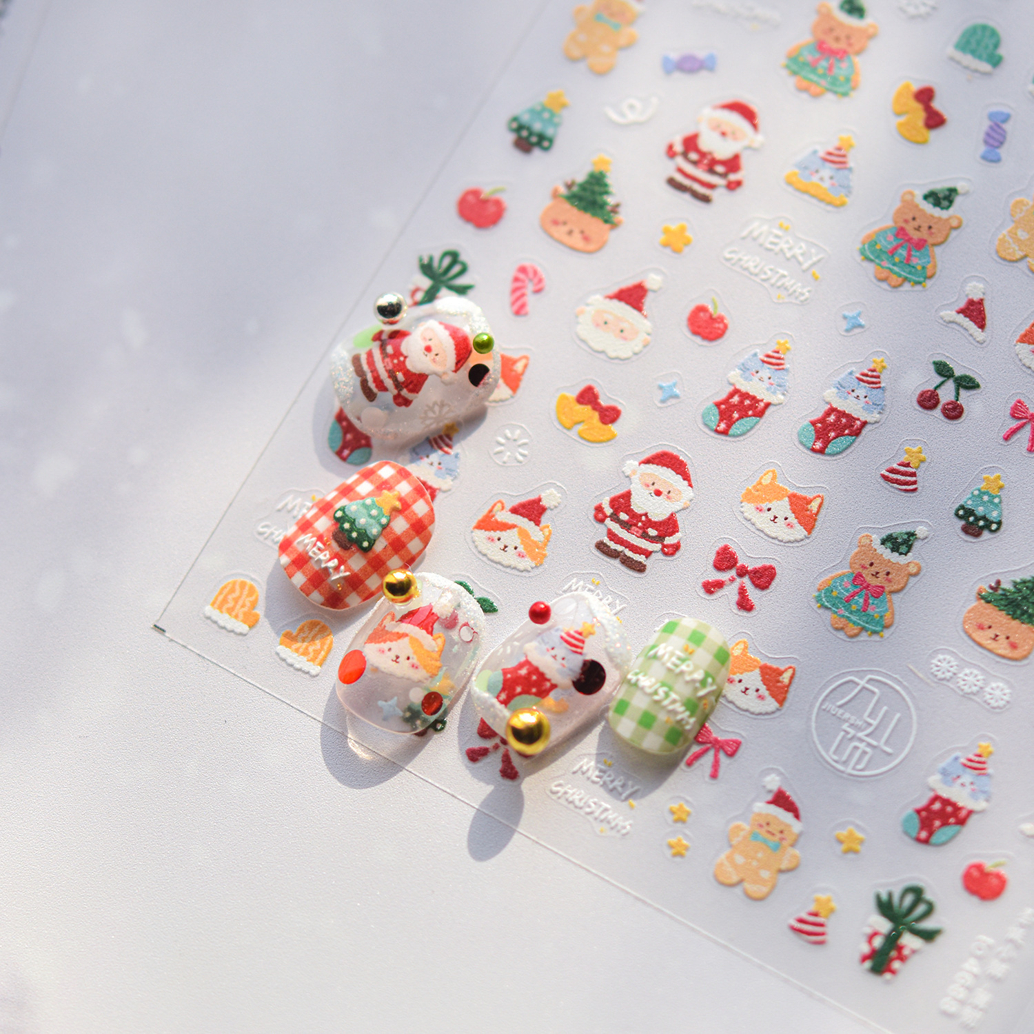 Tomoni 얇은 터프 네일 아트 스티커 폭발성 휴대 전화 쉘 어린이 네일 스티커 숲 작은 눈사람 네일 아트 보조 스티커스토어 가기