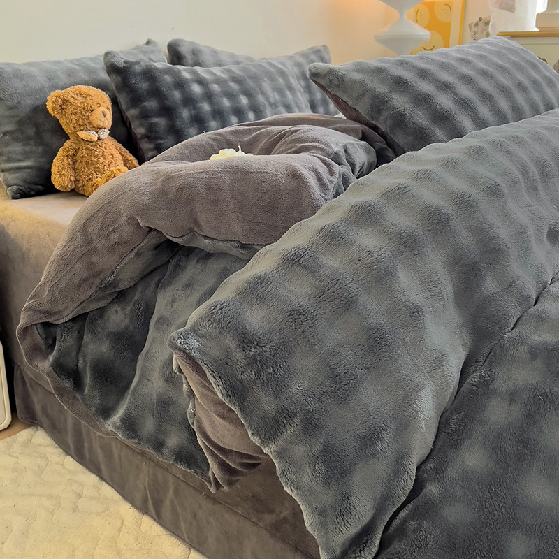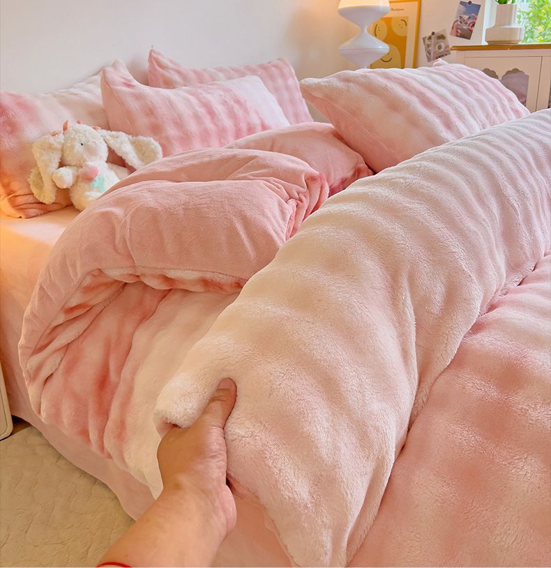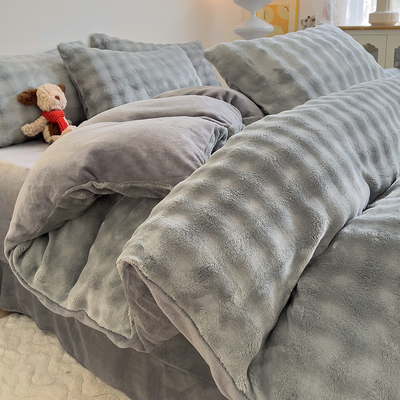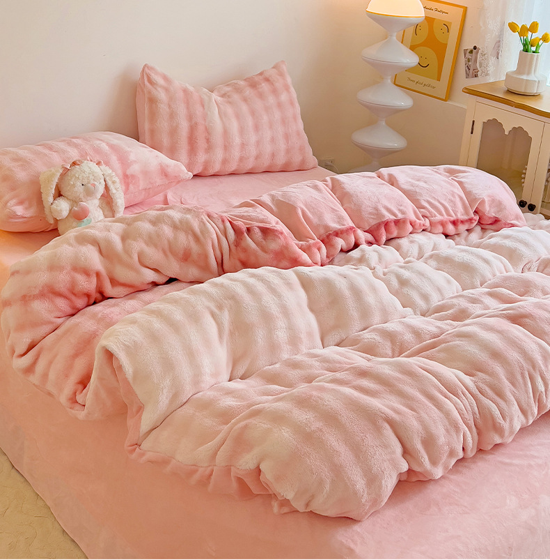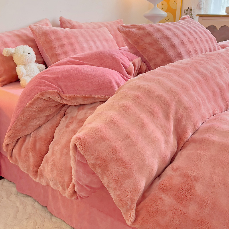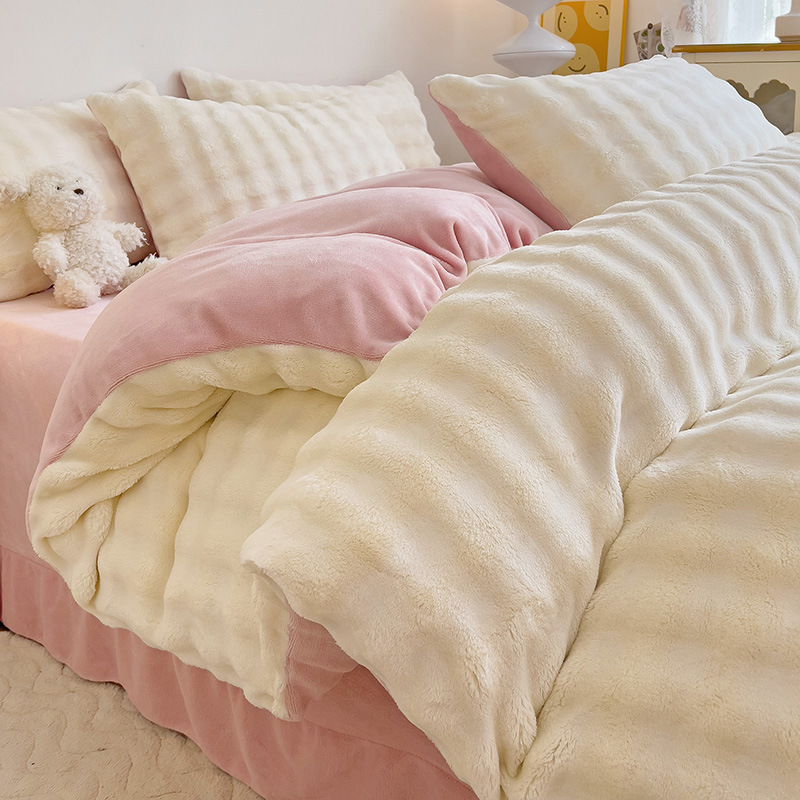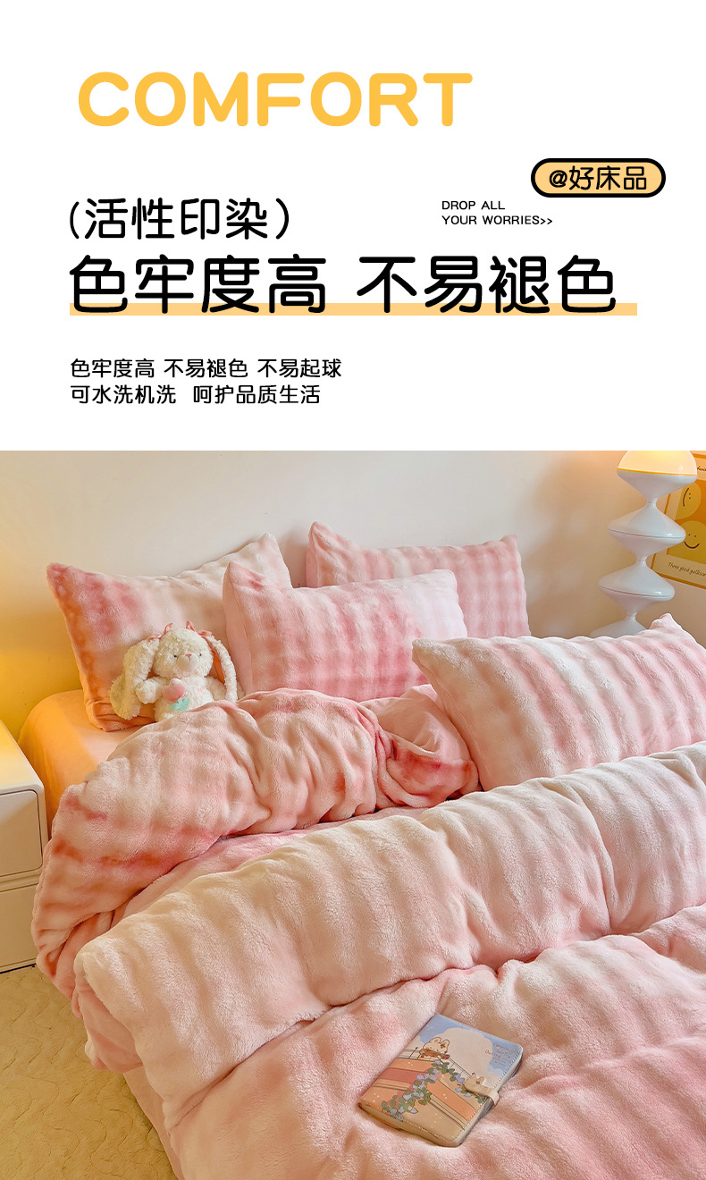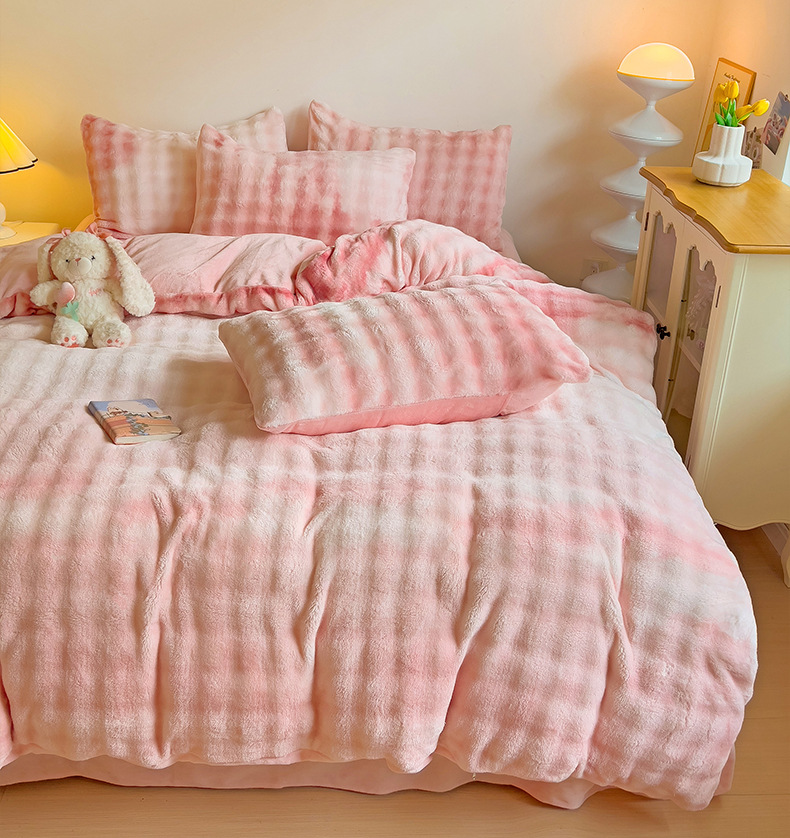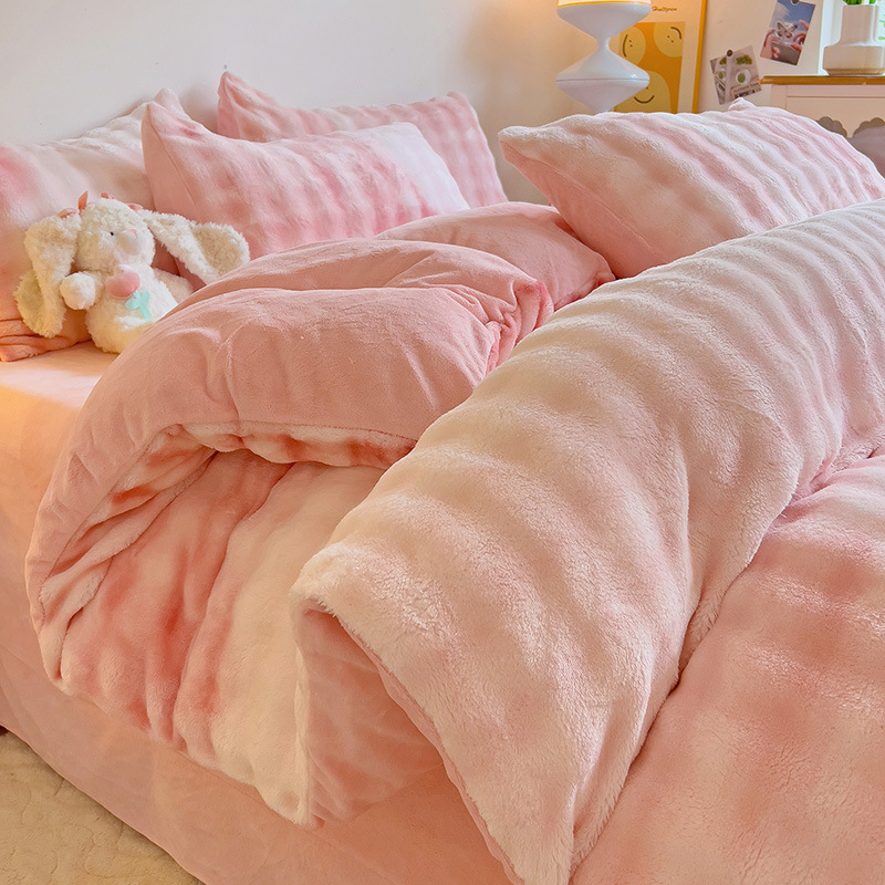 2024 폭발성 큰 거품 그라디언트 단색 토끼 봉제 토끼 토끼 벨벳 우유 벨벳 겨울 두꺼운 4 조각 세트스토어 가기