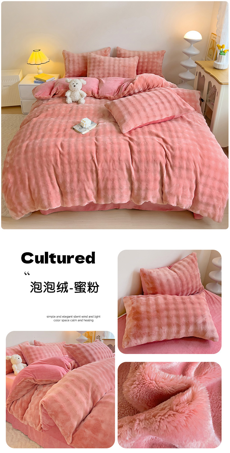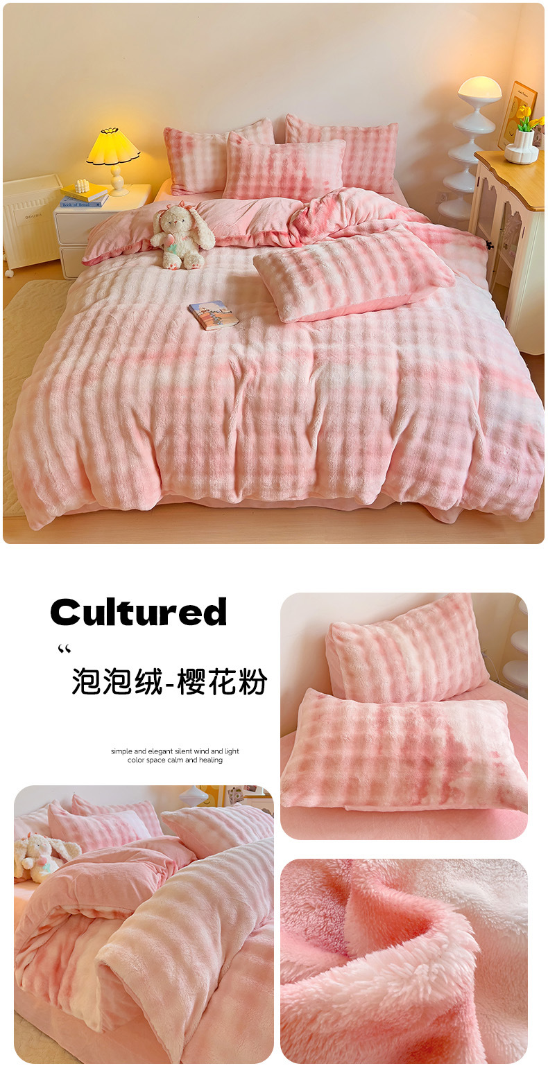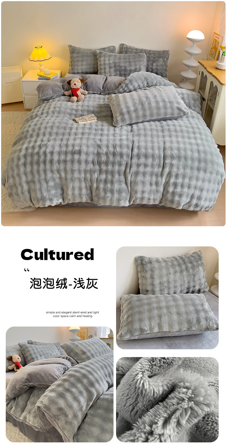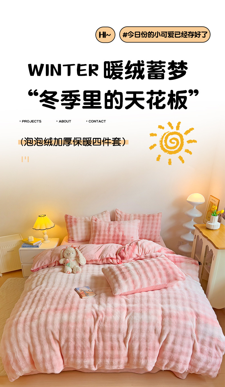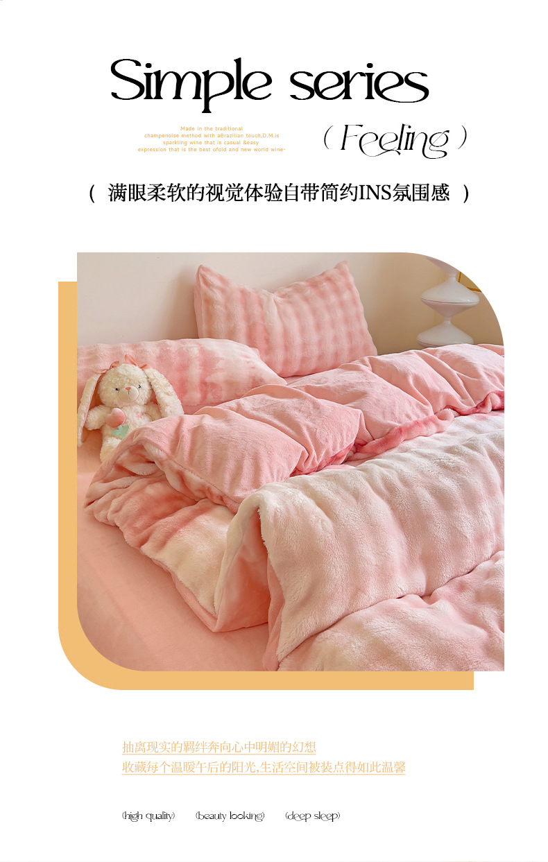 2024 폭발성 큰 거품 그라디언트 단색 토끼 봉제 토끼 토끼 벨벳 우유 벨벳 겨울 두꺼운 4 조각 세트스토어 가기
