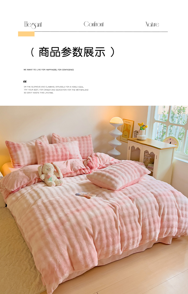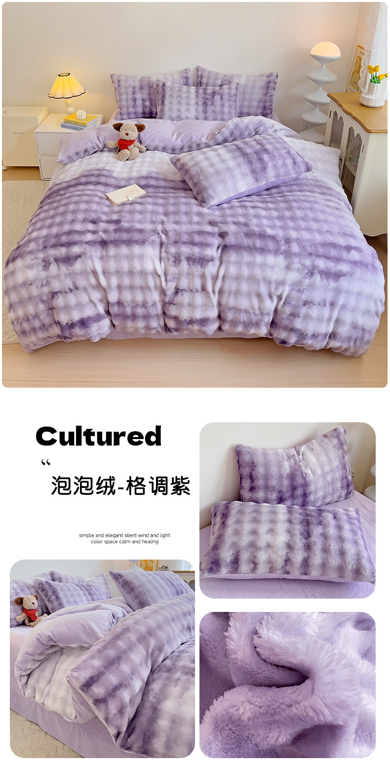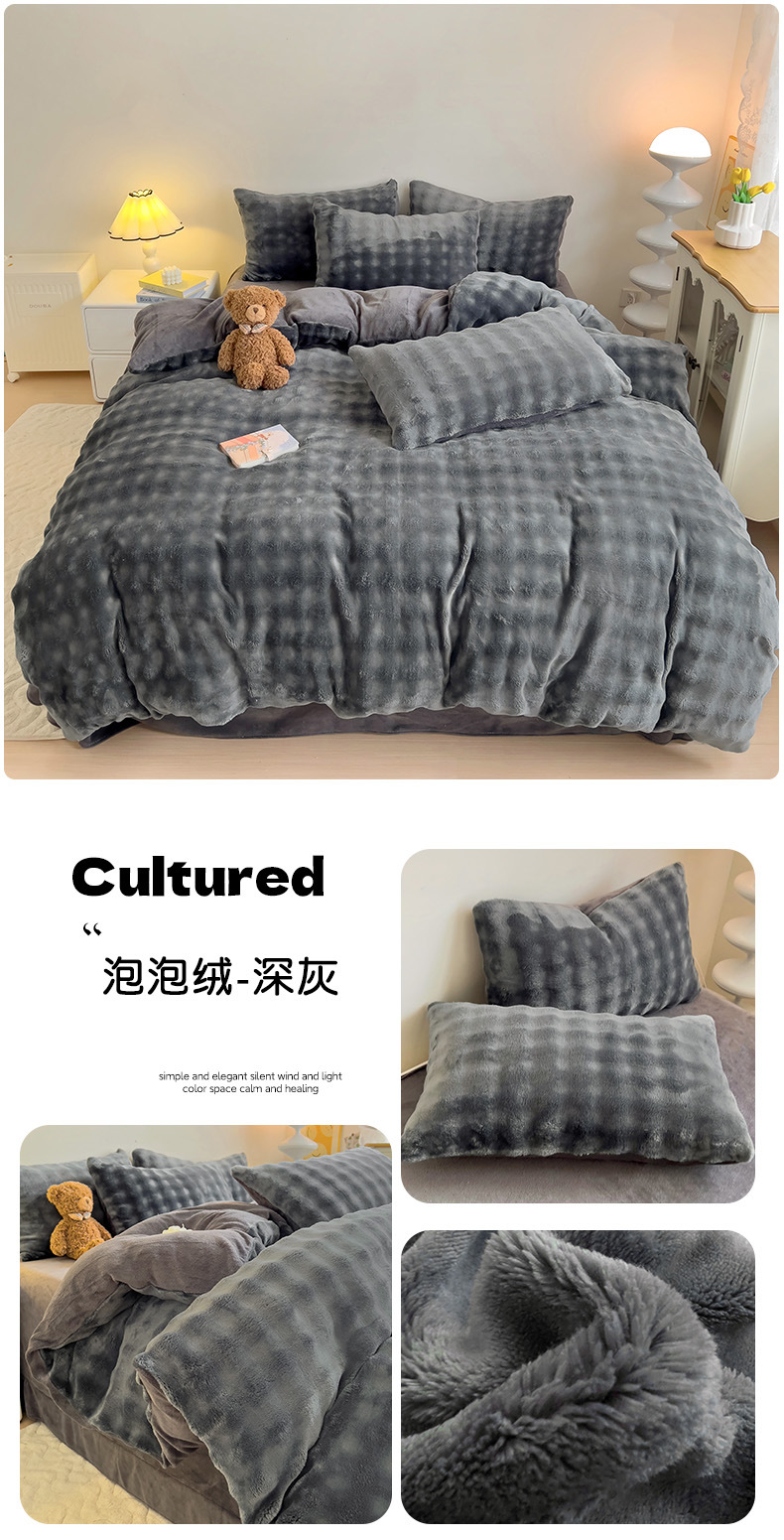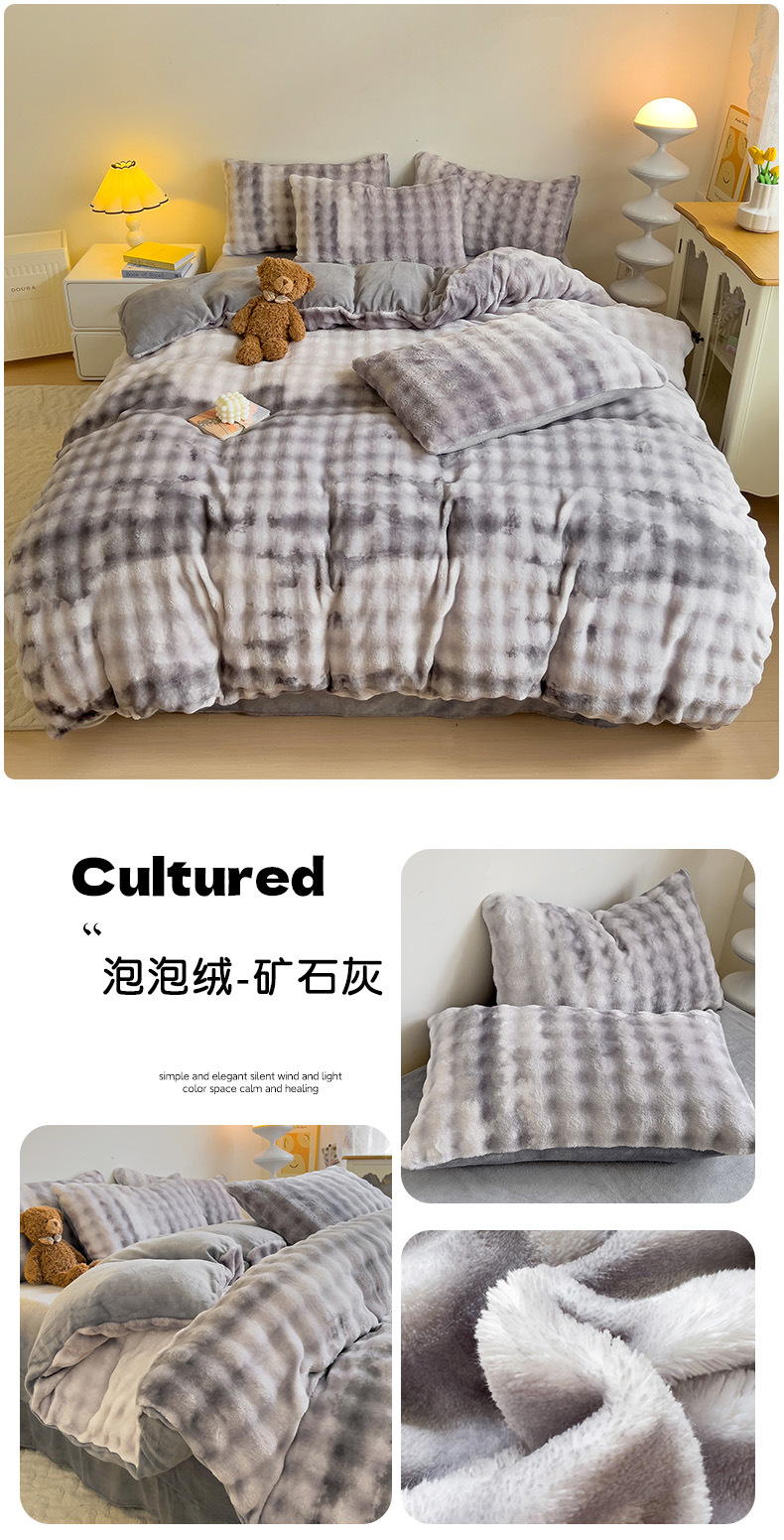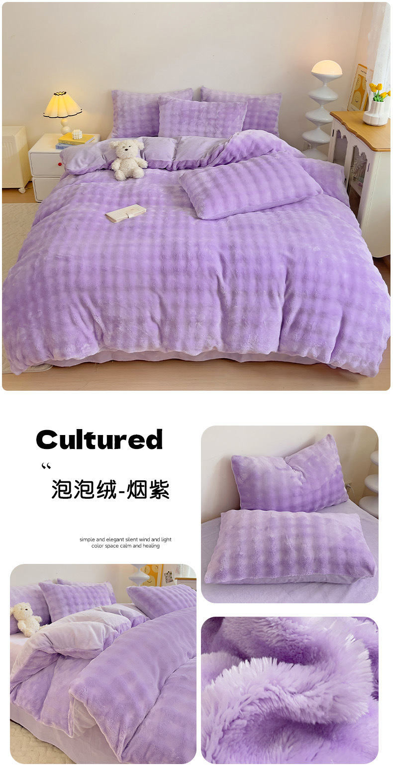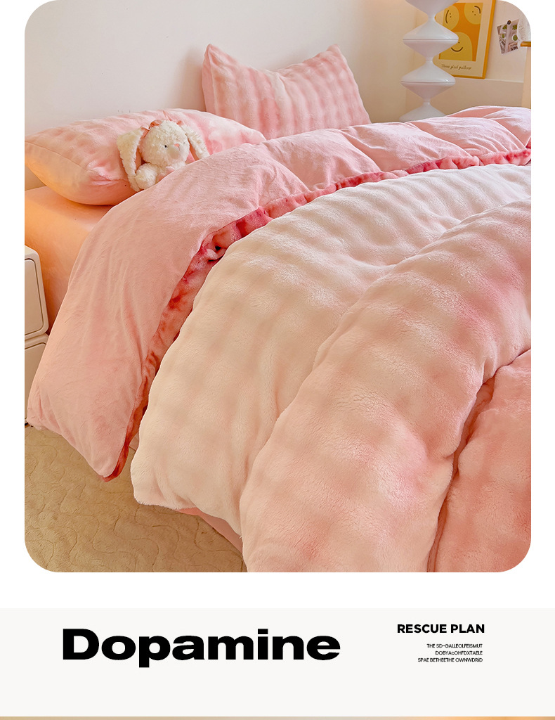 2024 폭발성 큰 거품 그라디언트 단색 토끼 봉제 토끼 토끼 벨벳 우유 벨벳 겨울 두꺼운 4 조각 세트스토어 가기