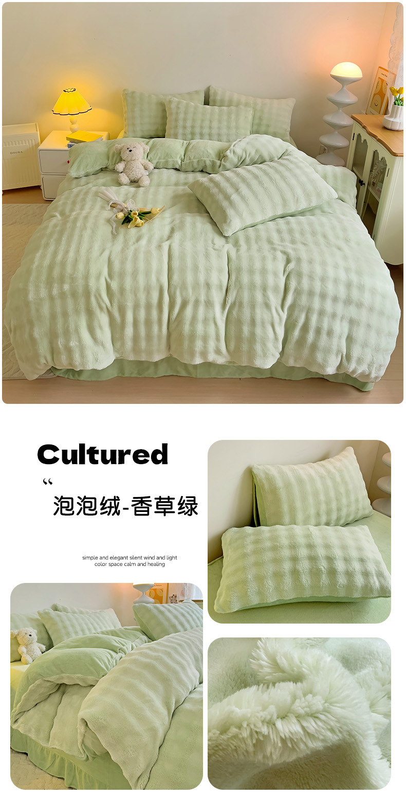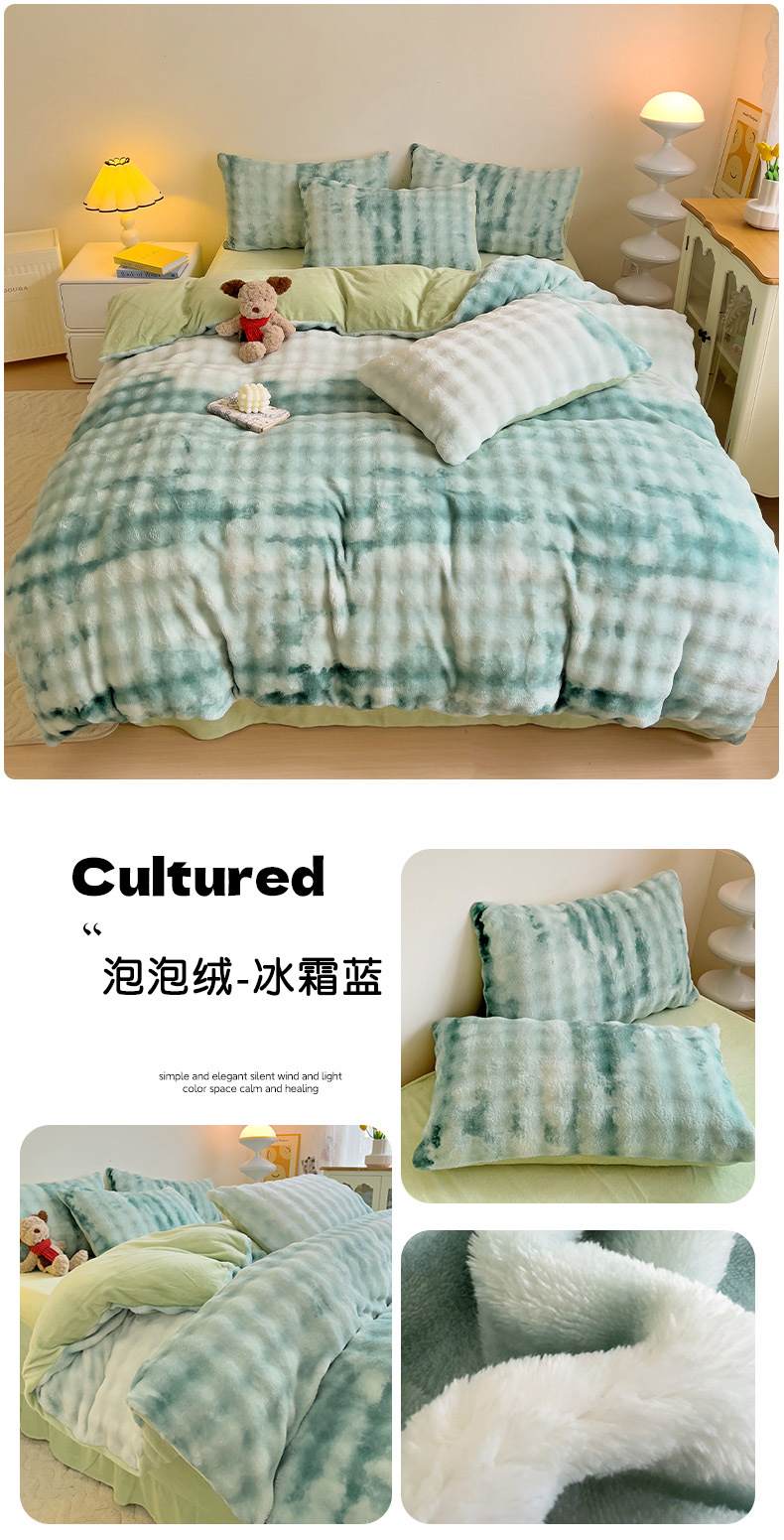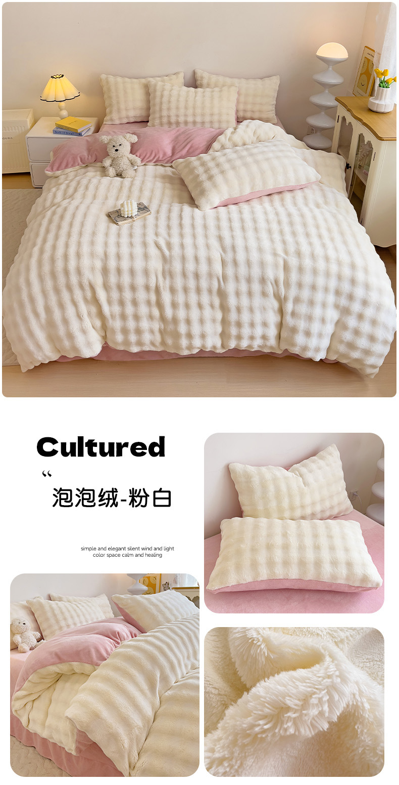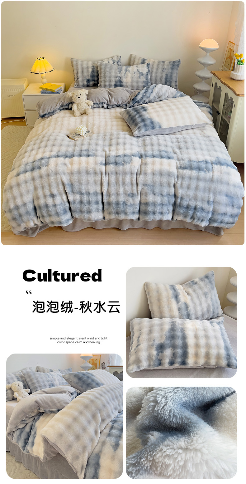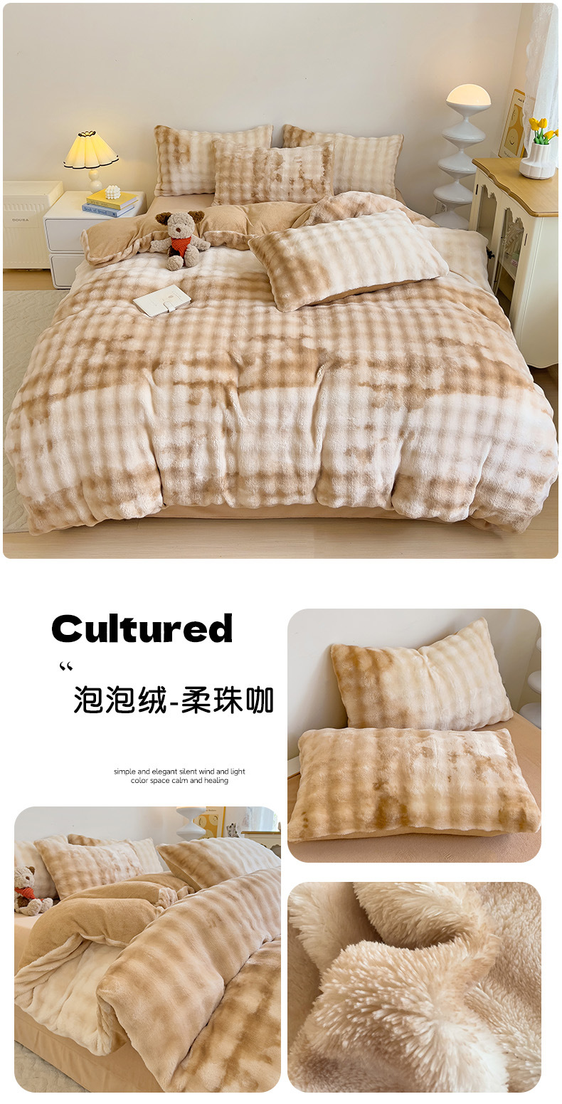 2024 폭발성 큰 거품 그라디언트 단색 토끼 봉제 토끼 토끼 벨벳 우유 벨벳 겨울 두꺼운 4 조각 세트스토어 가기