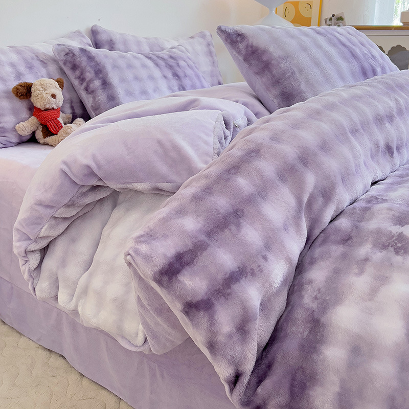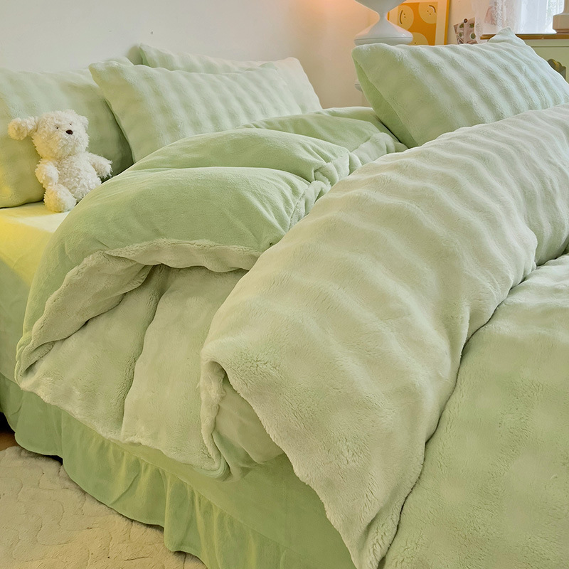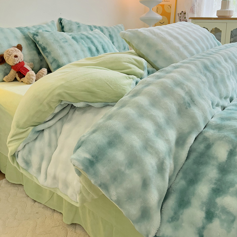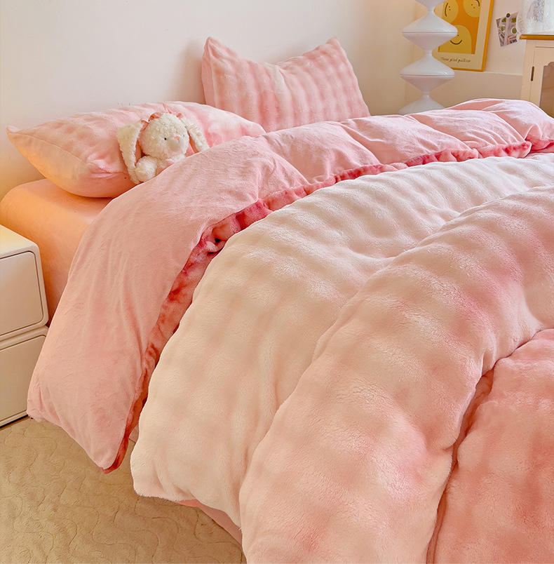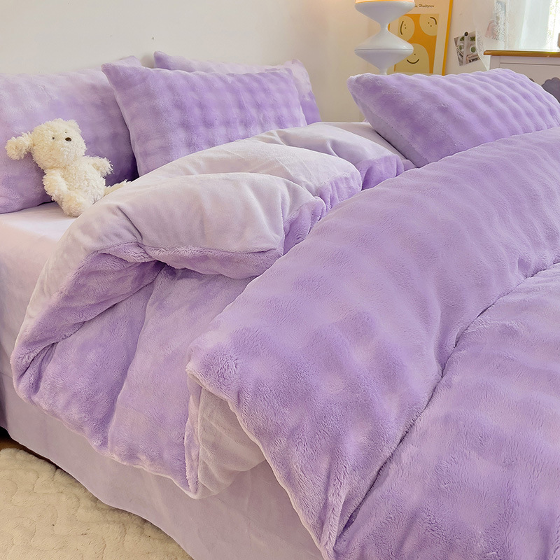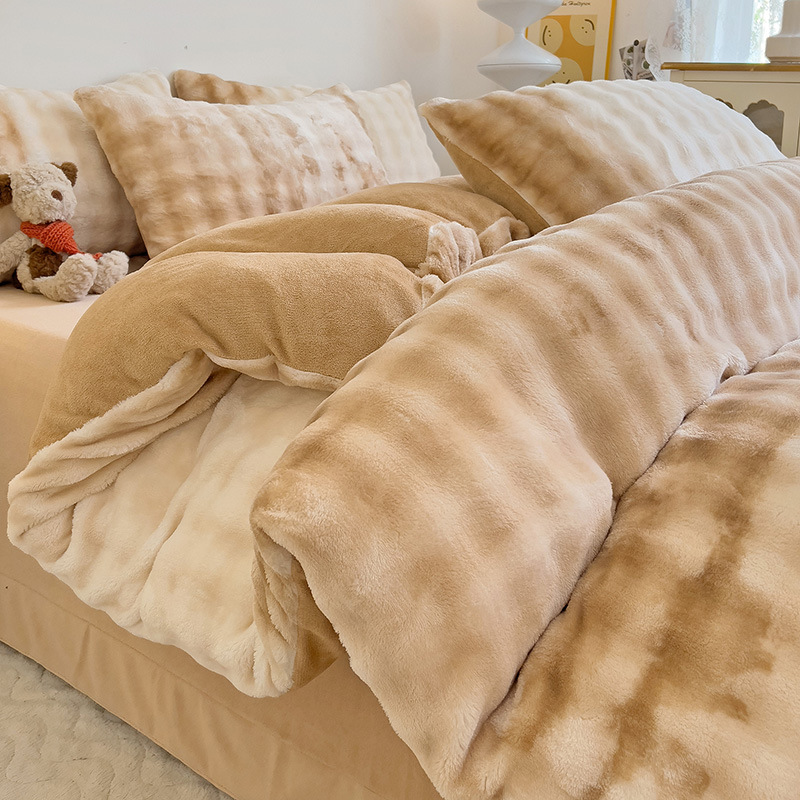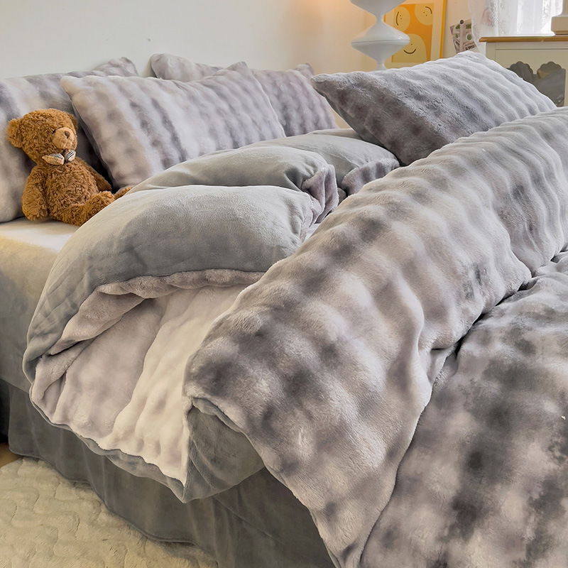 2024 폭발성 큰 거품 그라디언트 단색 토끼 봉제 토끼 토끼 벨벳 우유 벨벳 겨울 두꺼운 4 조각 세트