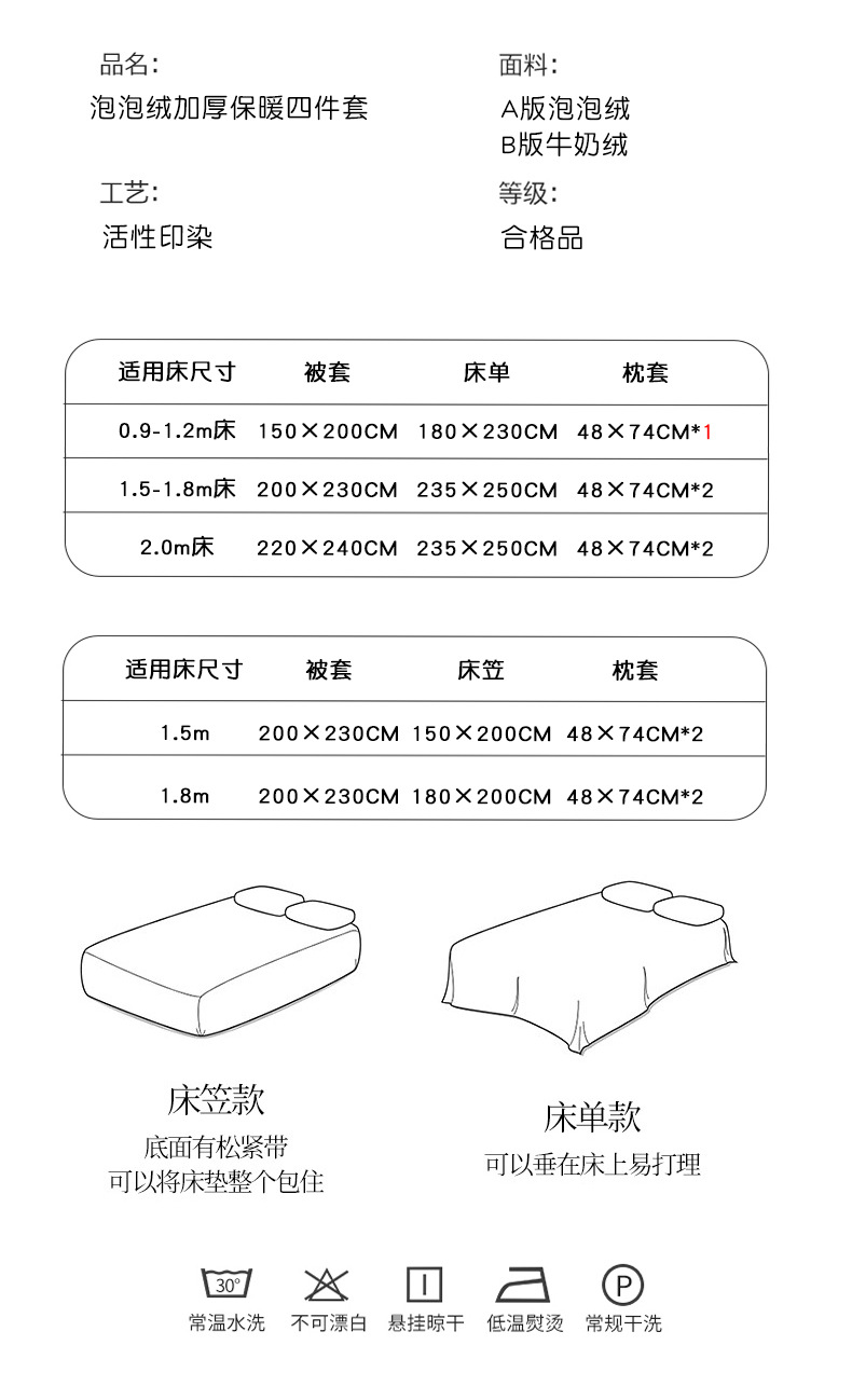 • 1.2m 침대시트 4종세트 [이불커버 150*200 침대시트 180*230]