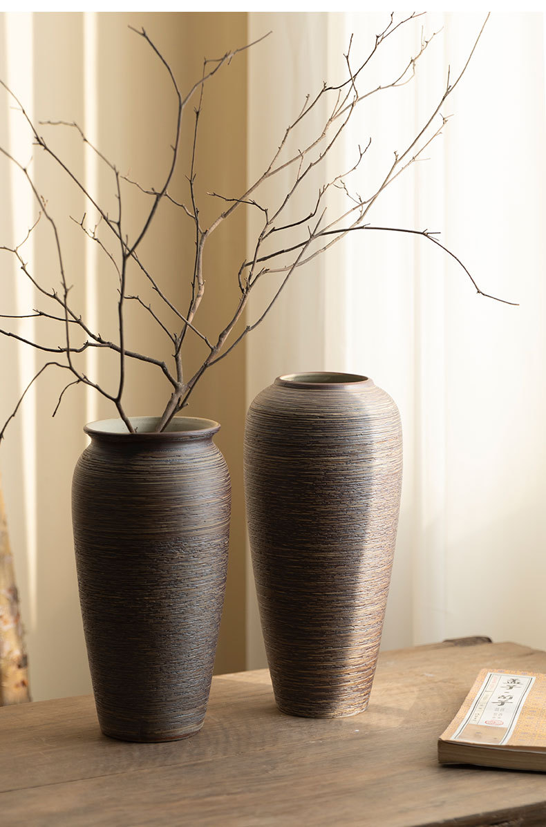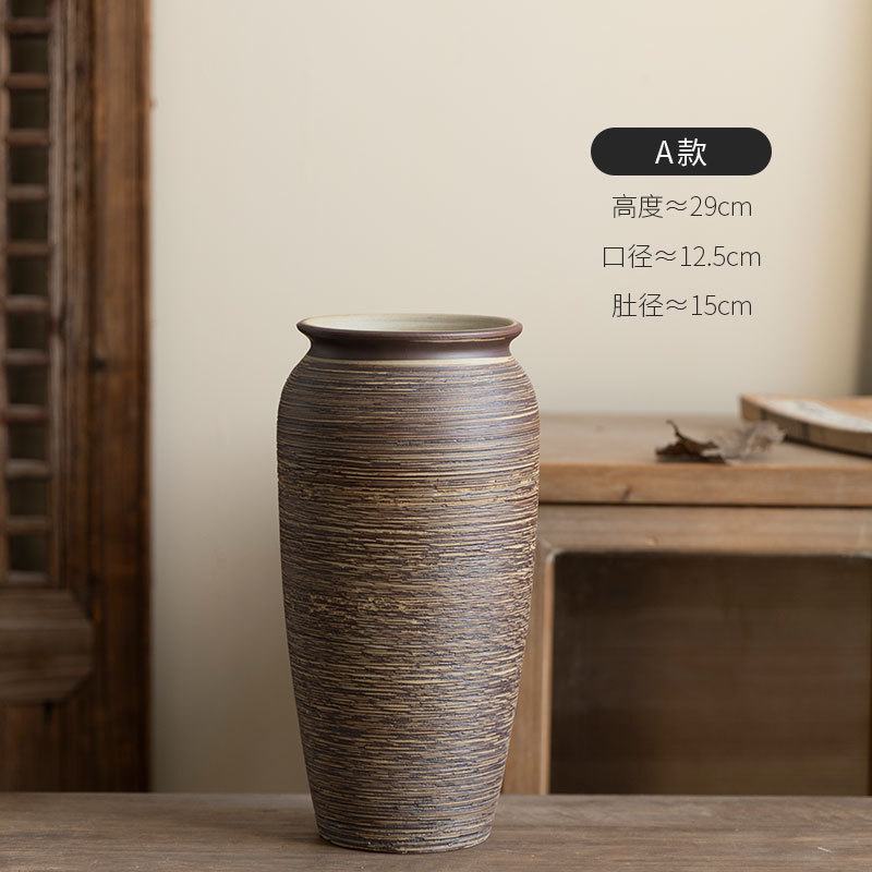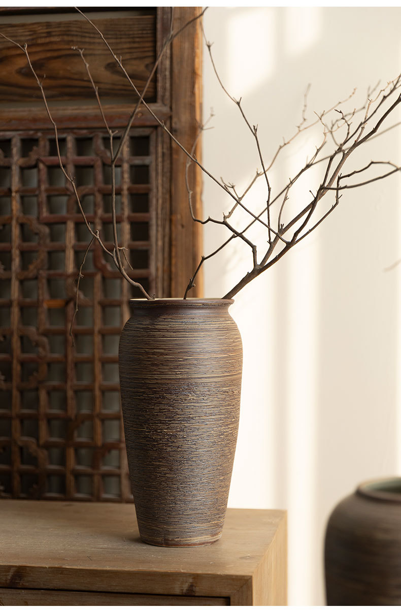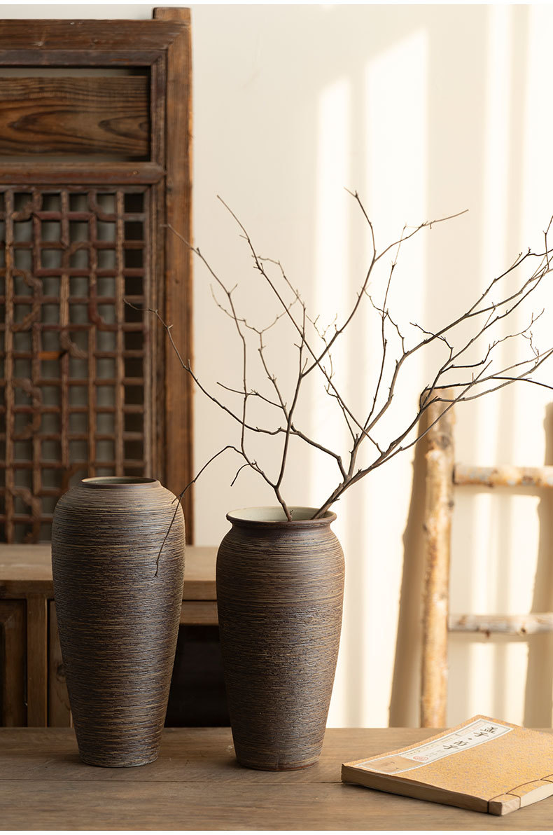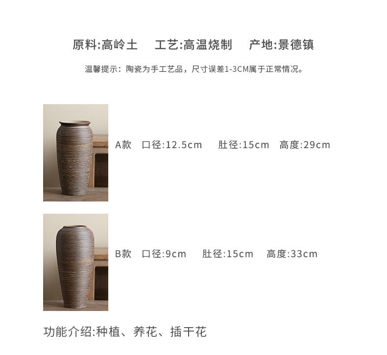 Jingdezhen 빈티지 세라믹 꽃병 중국 선 꽃 냄비 수제 굵은 도자기 냄비 거실 홈 꽃 장식품스토어 가기