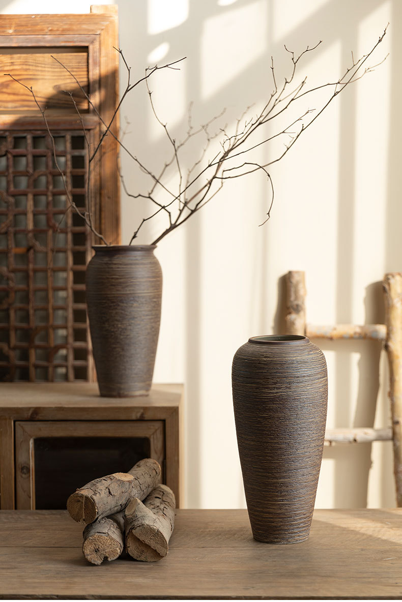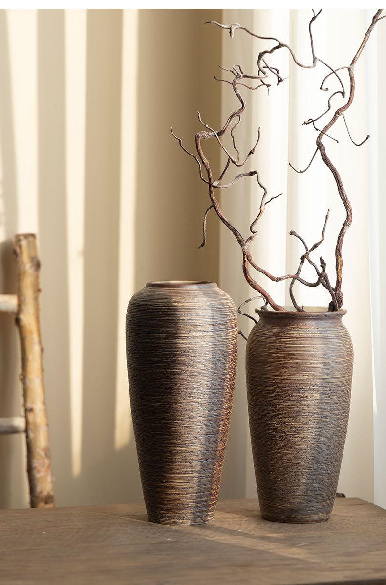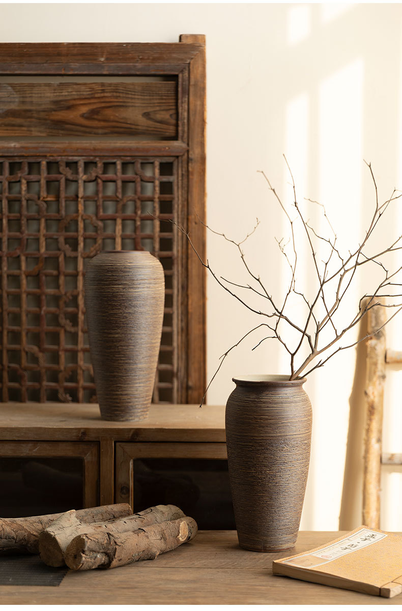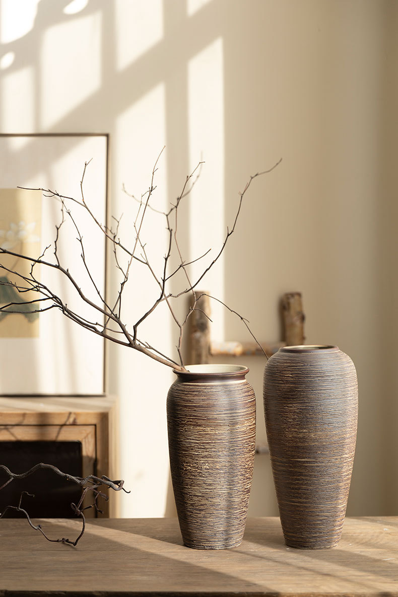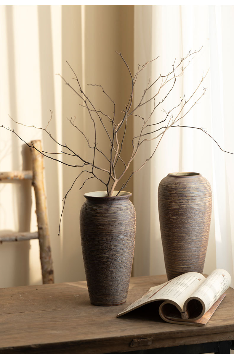 Jingdezhen 빈티지 세라믹 꽃병 중국 선 꽃 냄비 수제 굵은 도자기 냄비 거실 홈 꽃 장식품스토어 가기
