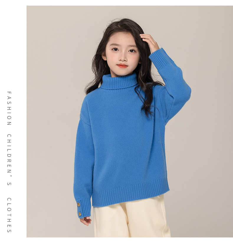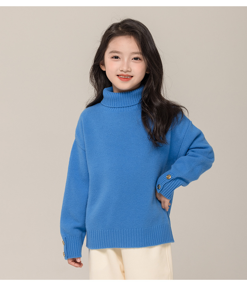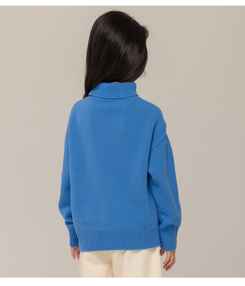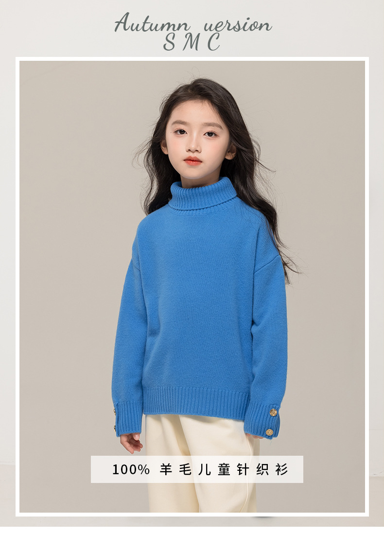 어린이 터틀넥 스웨터 메리노 울 100 여자 스웨터 엘 니트 베이스 셔츠 한국식 블루 트렌디스토어 가기