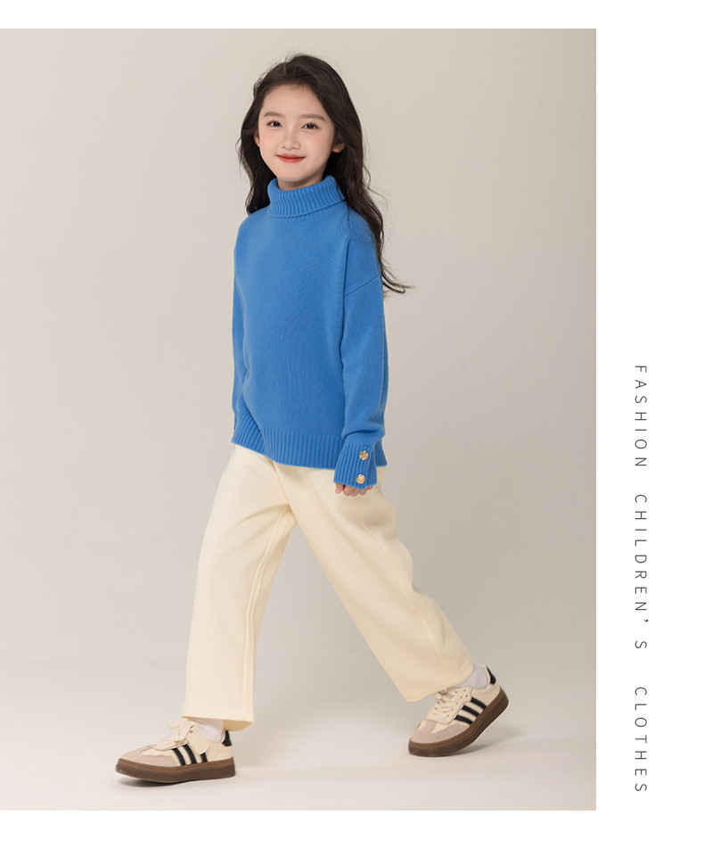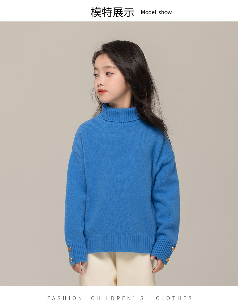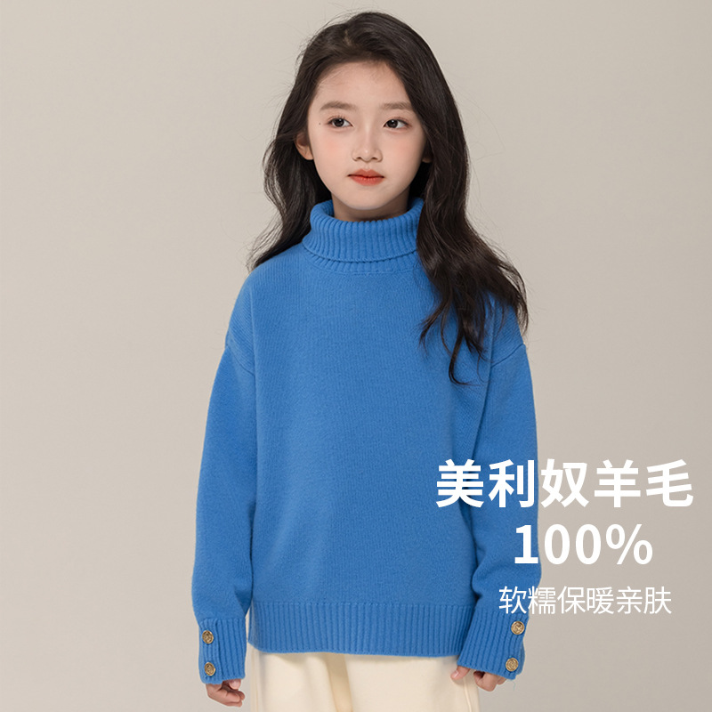 어린이 터틀넥 스웨터 메리노 울 100 여자 스웨터 엘 니트 베이스 셔츠 한국식 블루 트렌디