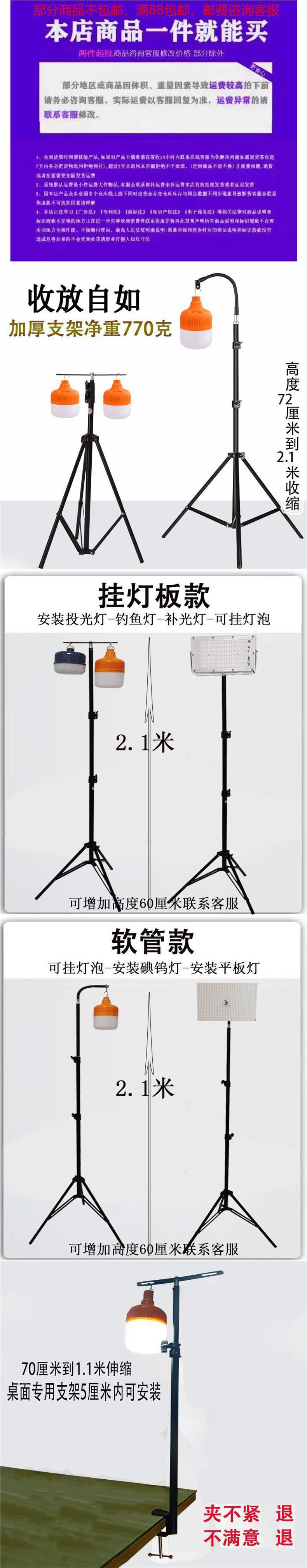 캠핑 램프 랙 폴 스톨 야간 시장 충전 투광 조명 바닥 텔레스코픽 3 다리 데스크탑 클립 조명 교수형 램프 랙 없음