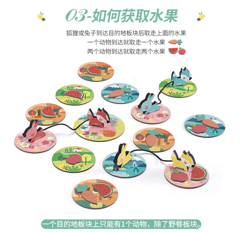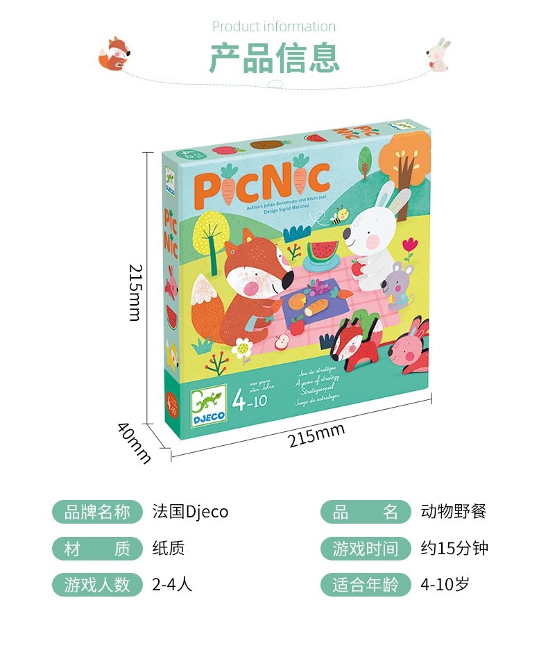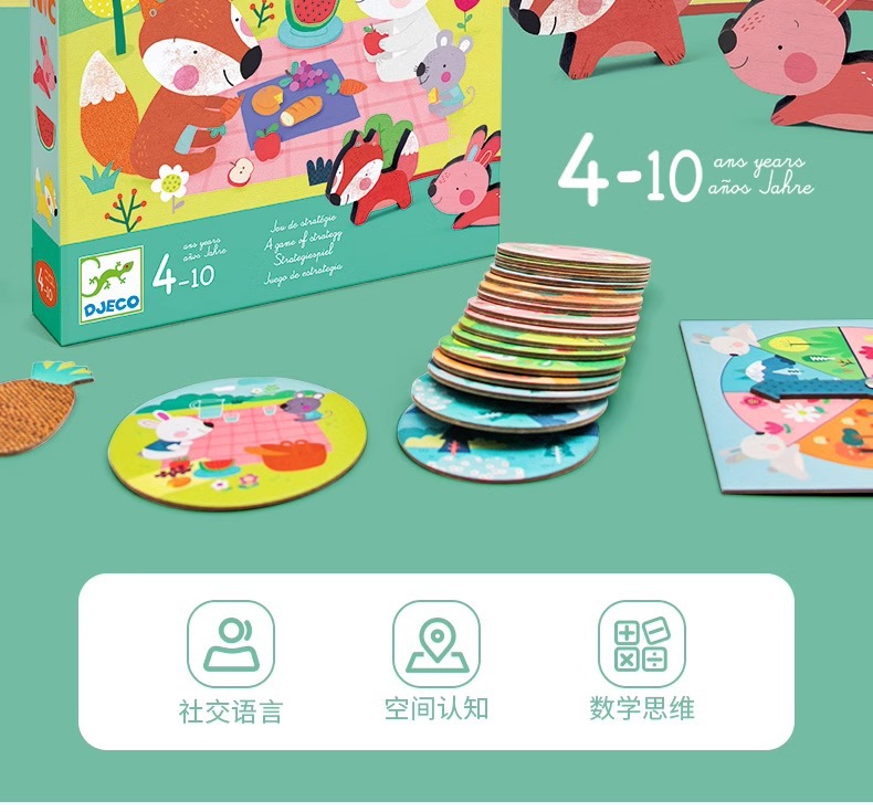 Djeco 어린이 데스크탑 게임 동물 피크닉 4-6 세 공간 수학적 사고 논리 부모-아동 교육 장난감스토어 가기