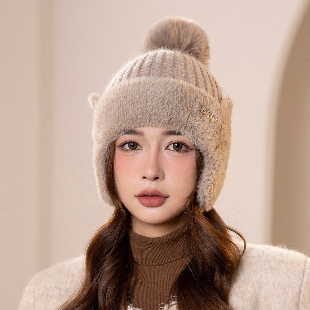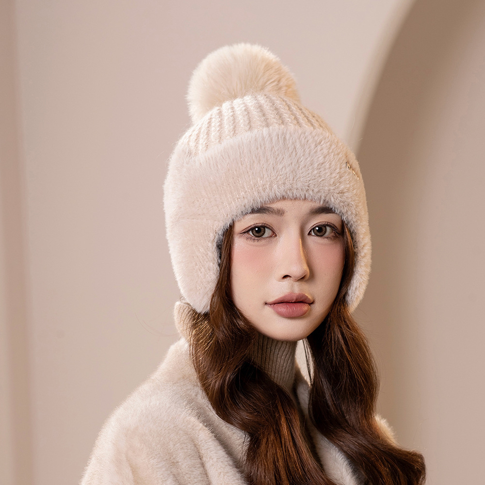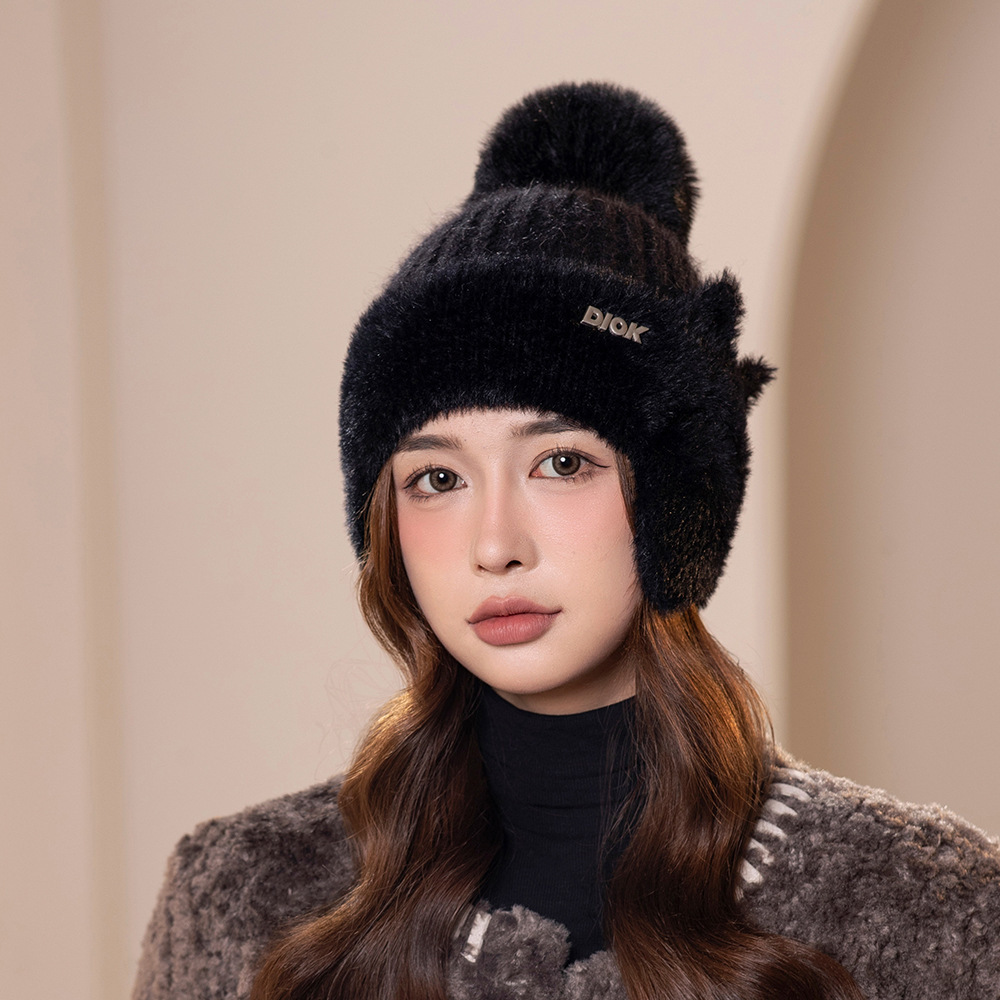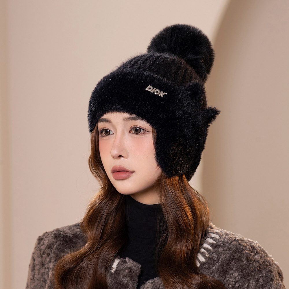 겨울 새로운 바느질 밍크 벨벳 귀 보호 기모 울 모자 어린이 한국 패션 단색 간단한 니트 모자 소스 공장스토어 가기