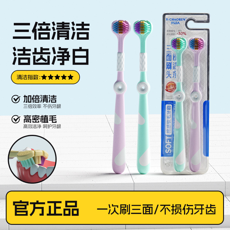 치아 슈퍼맨 마카롱 컬러 3 면 칫솔 더블 팩 성인 어린이 가족 부드러운 헤어 랩 치아 청소 도매