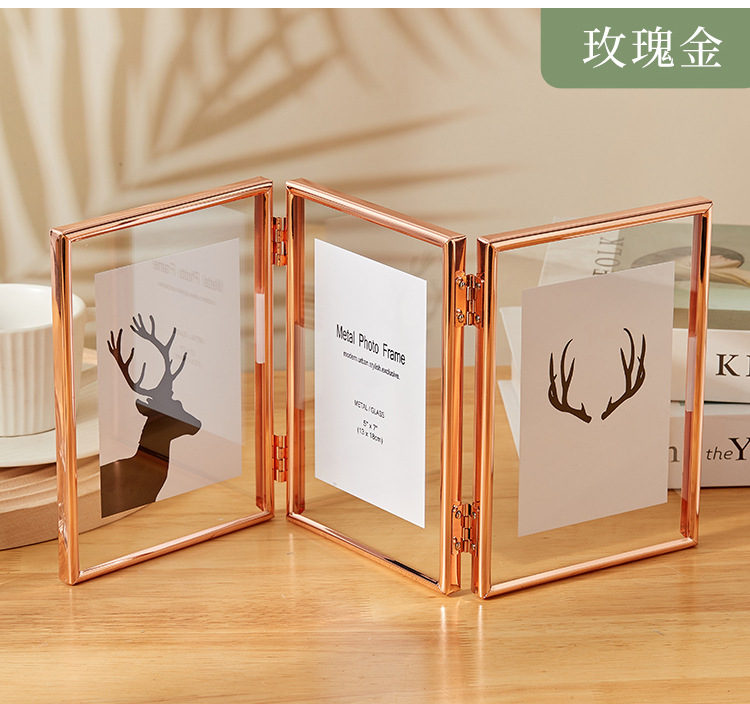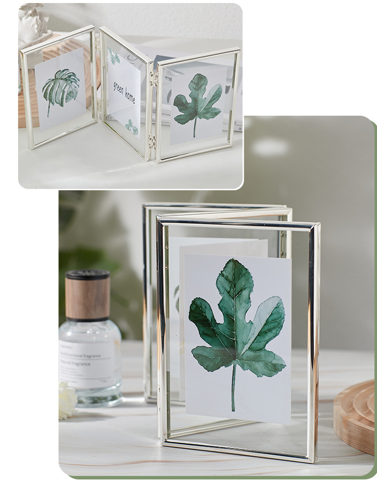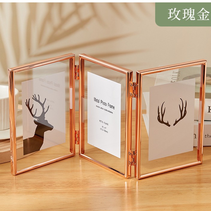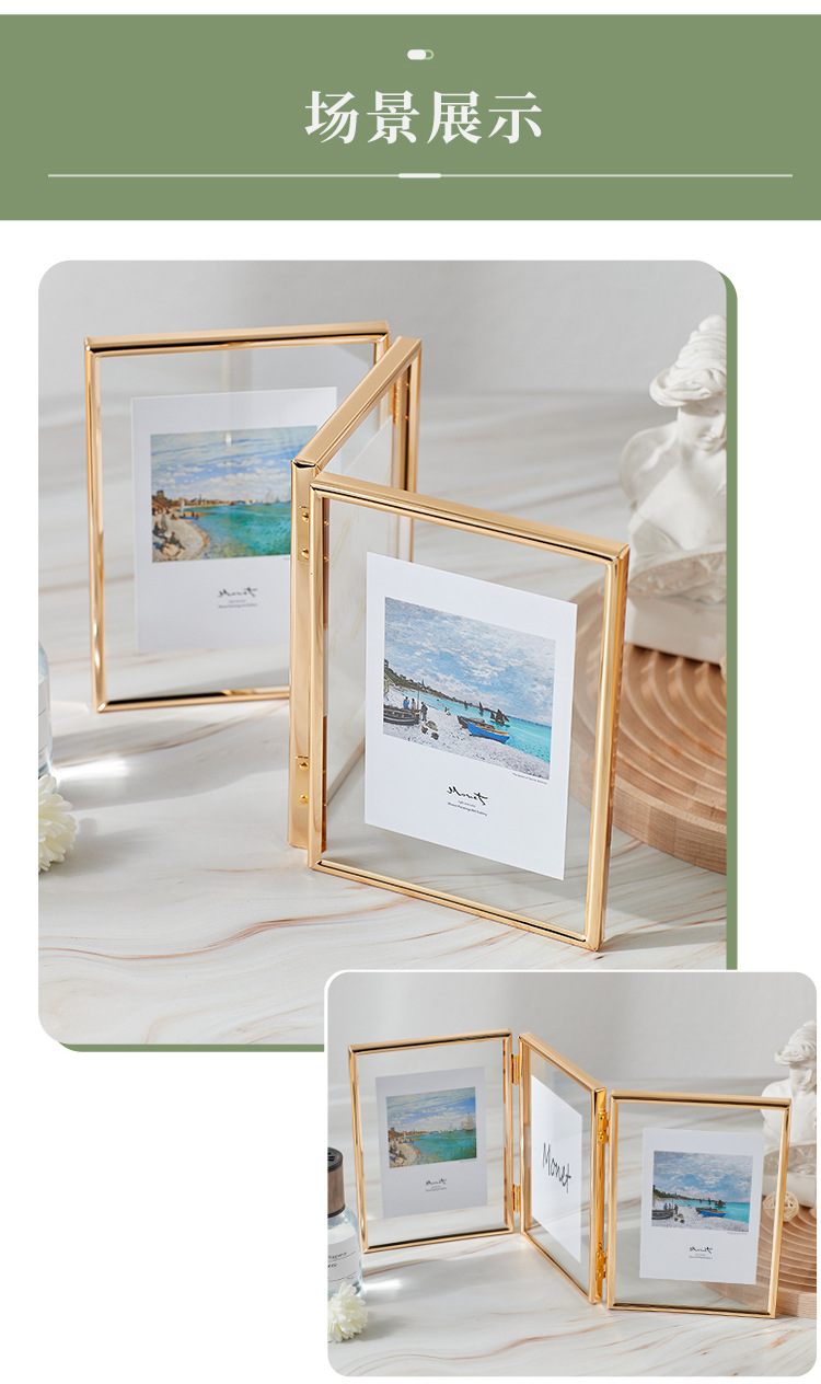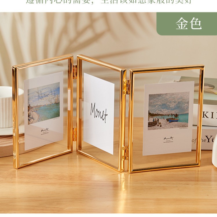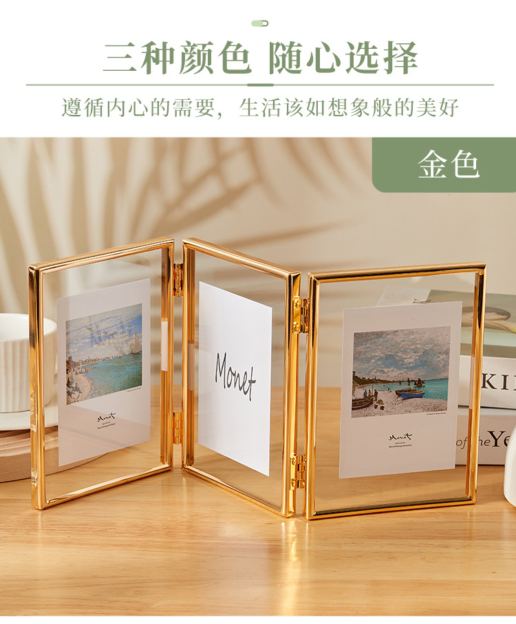3 개의 접이식 투명 금속 포토 프레임 장식품이있는 스타, "3 개의 접는 방법, 모든 얼굴을 접는 방법"스토어 가기