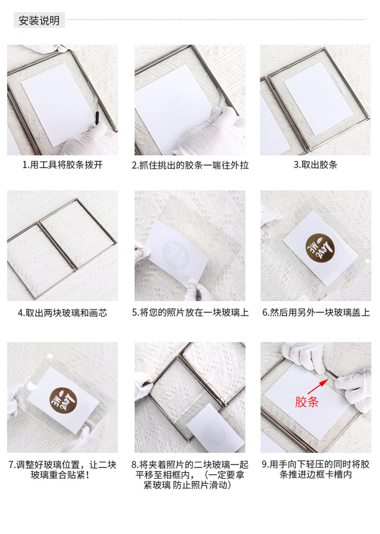 3 개의 접이식 투명 금속 포토 프레임 장식품이있는 스타, "3 개의 접는 방법, 모든 얼굴을 접는 방법"