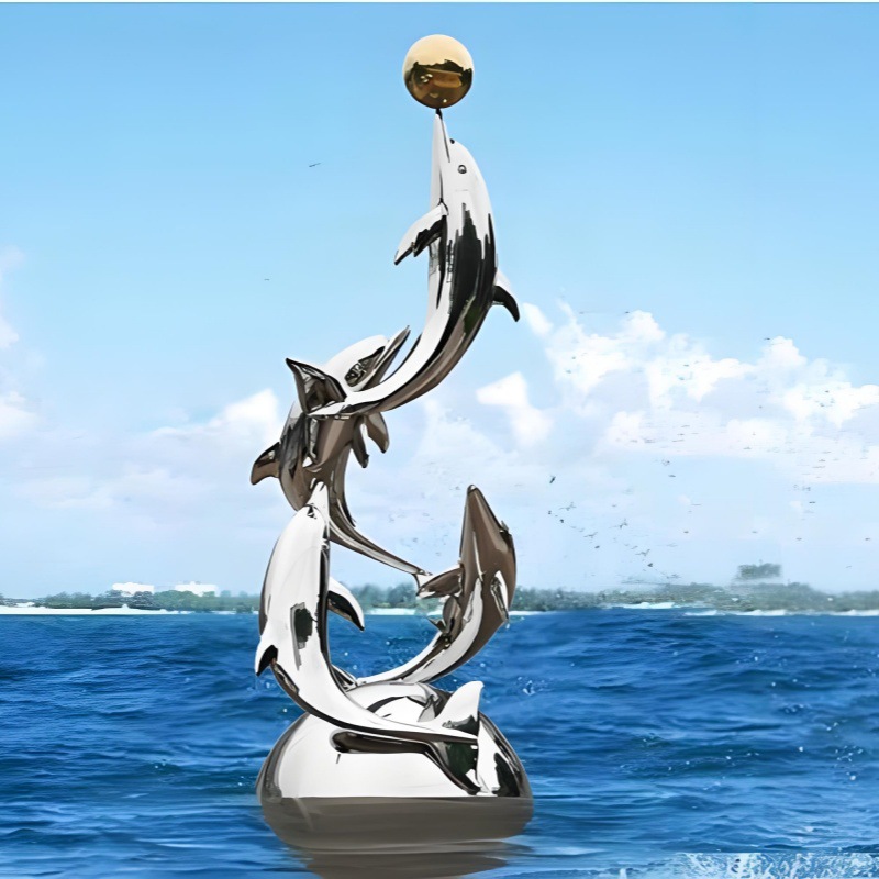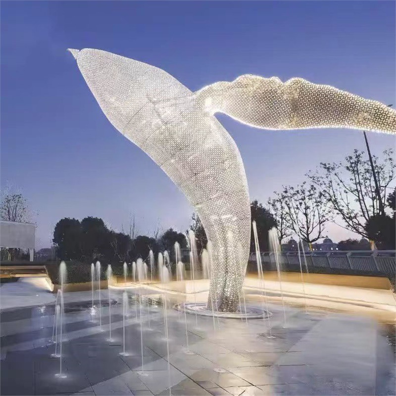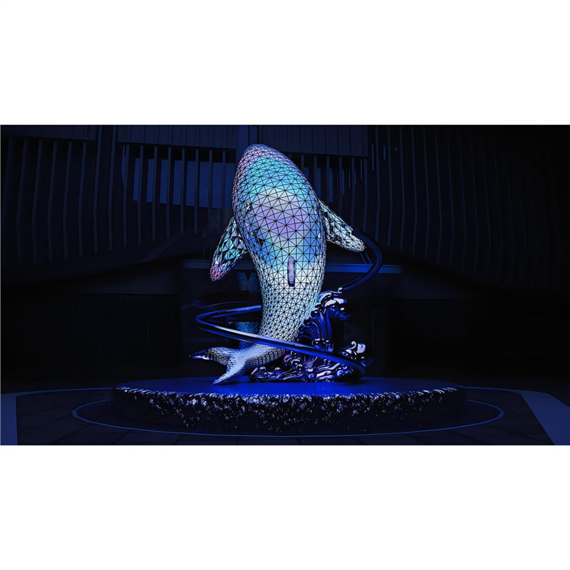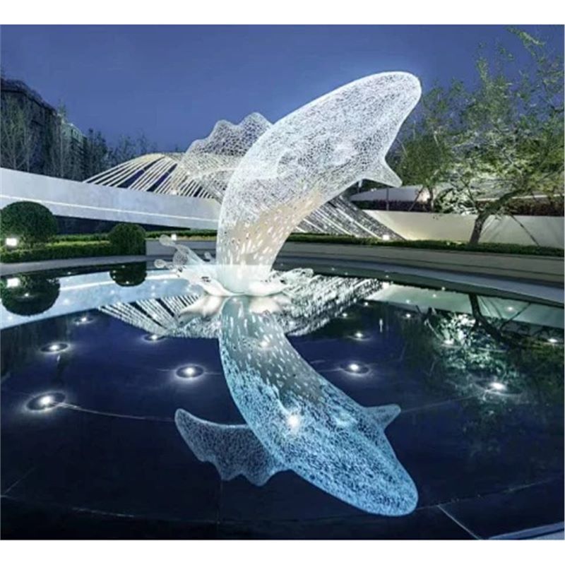 대형 스테인레스 스틸 고래 돌고래 조각 도시 건물 랜드마크 풍경 빛나는 중공 파도 물고기 장식품