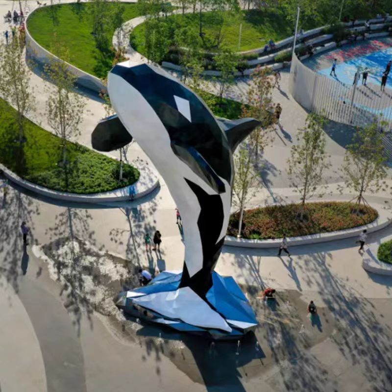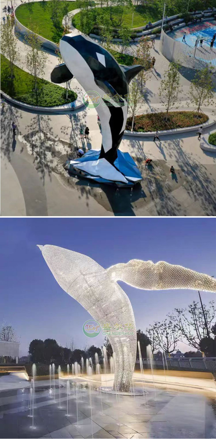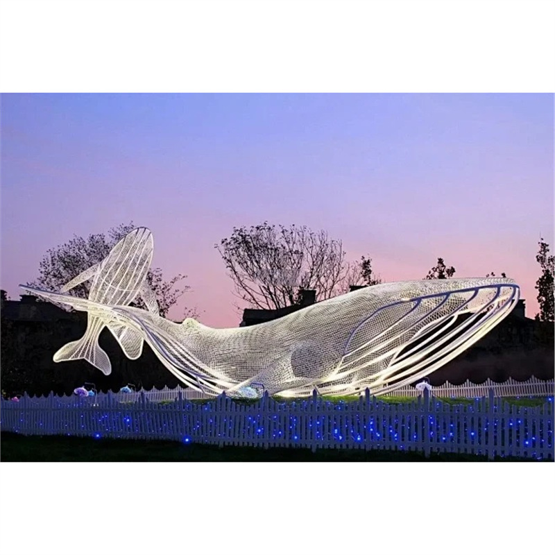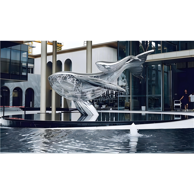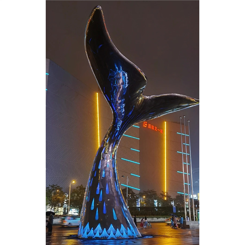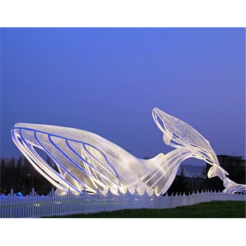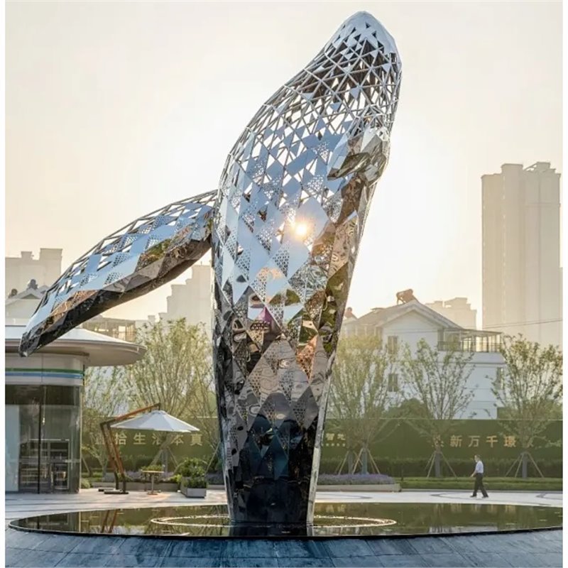 대형 스테인레스 스틸 고래 돌고래 조각 도시 건물 랜드마크 풍경 빛나는 중공 파도 물고기 장식품스토어 가기