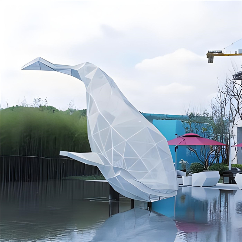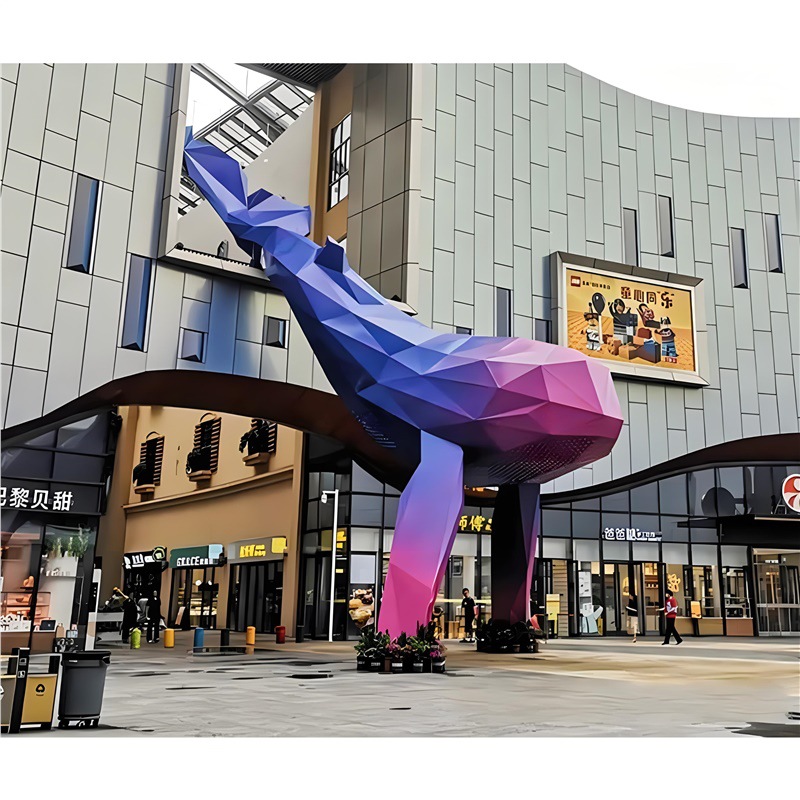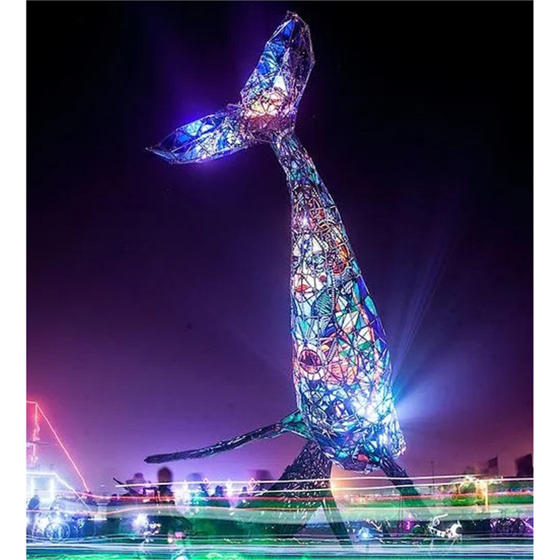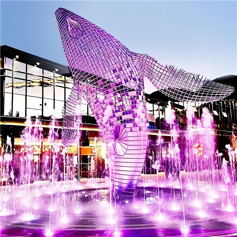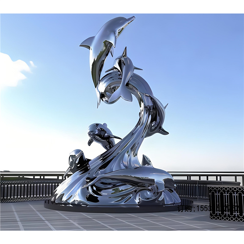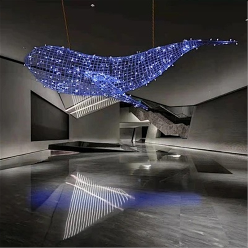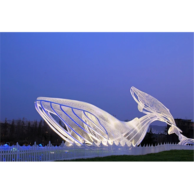 대형 스테인레스 스틸 고래 돌고래 조각 도시 건물 랜드마크 풍경 빛나는 중공 파도 물고기 장식품스토어 가기