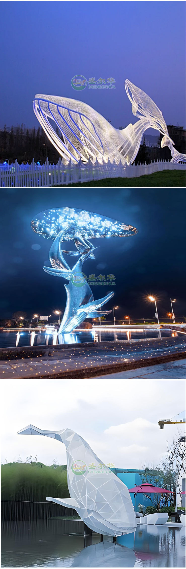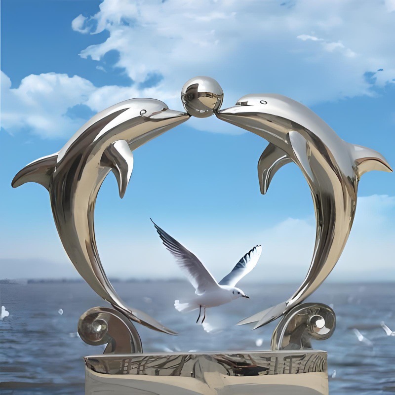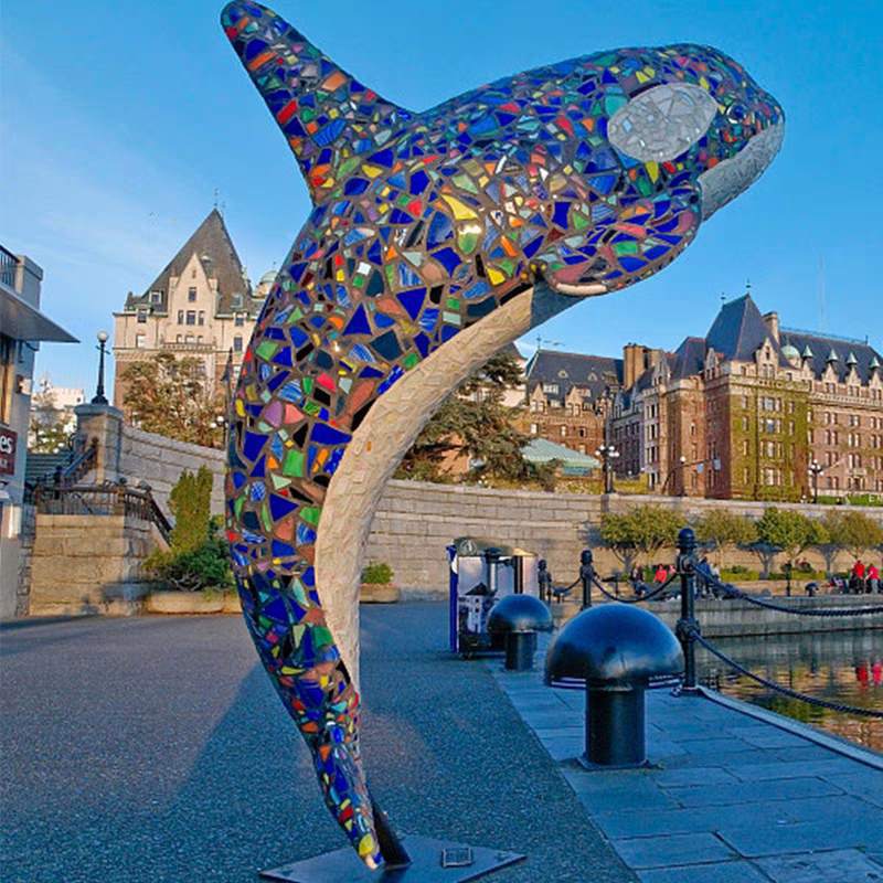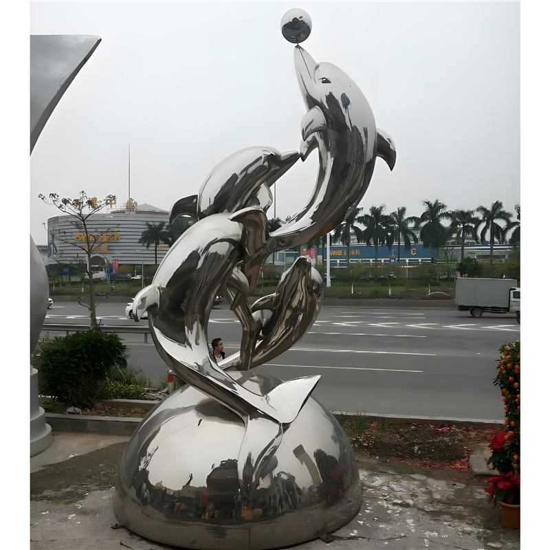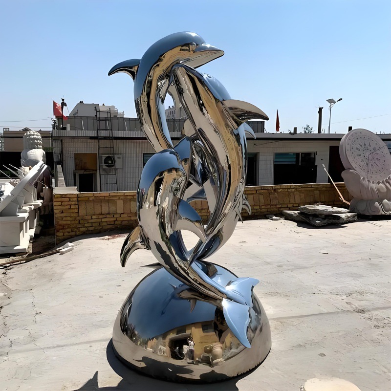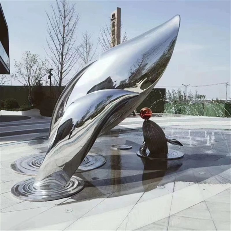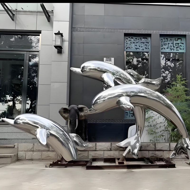 대형 스테인레스 스틸 고래 돌고래 조각 도시 건물 랜드마크 풍경 빛나는 중공 파도 물고기 장식품스토어 가기