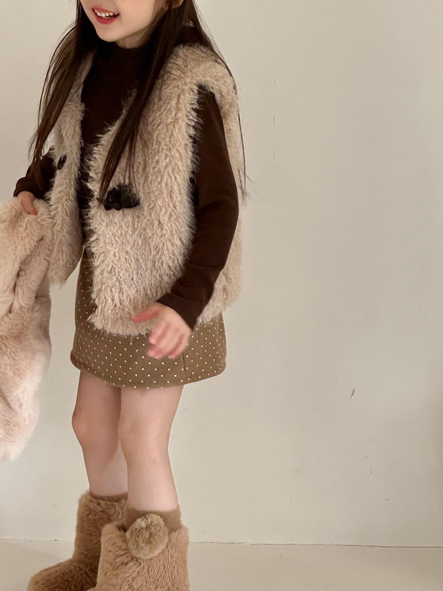 유유 공주 여아 한국 아동복 곱슬털 조끼 아기 겨울 한국 스타일 단색 털조끼