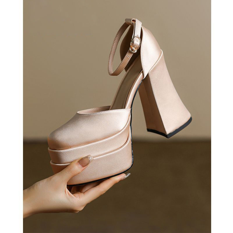 작은 두꺼운 힐 플랫폼 하이힐 약혼 연회 신발 피곤하지 않은 발 메인 웨딩 원피스 웨딩 신발 아티팩트 2024 새로운스토어 가기