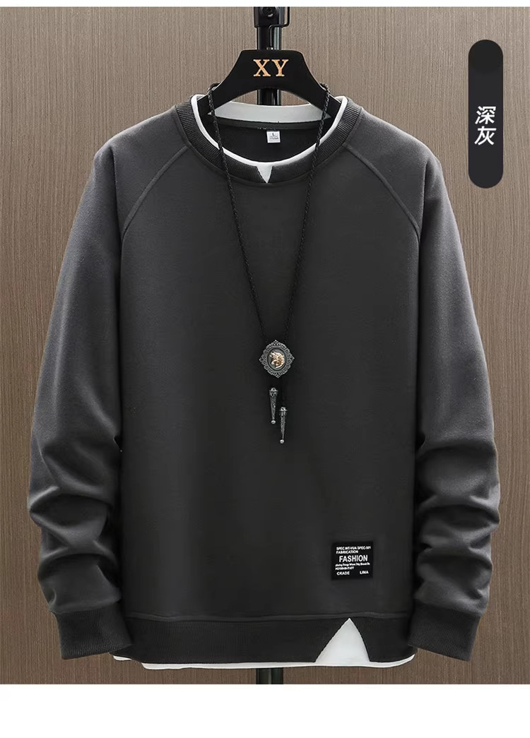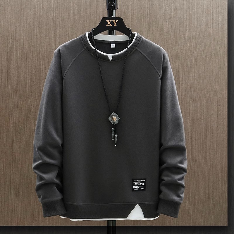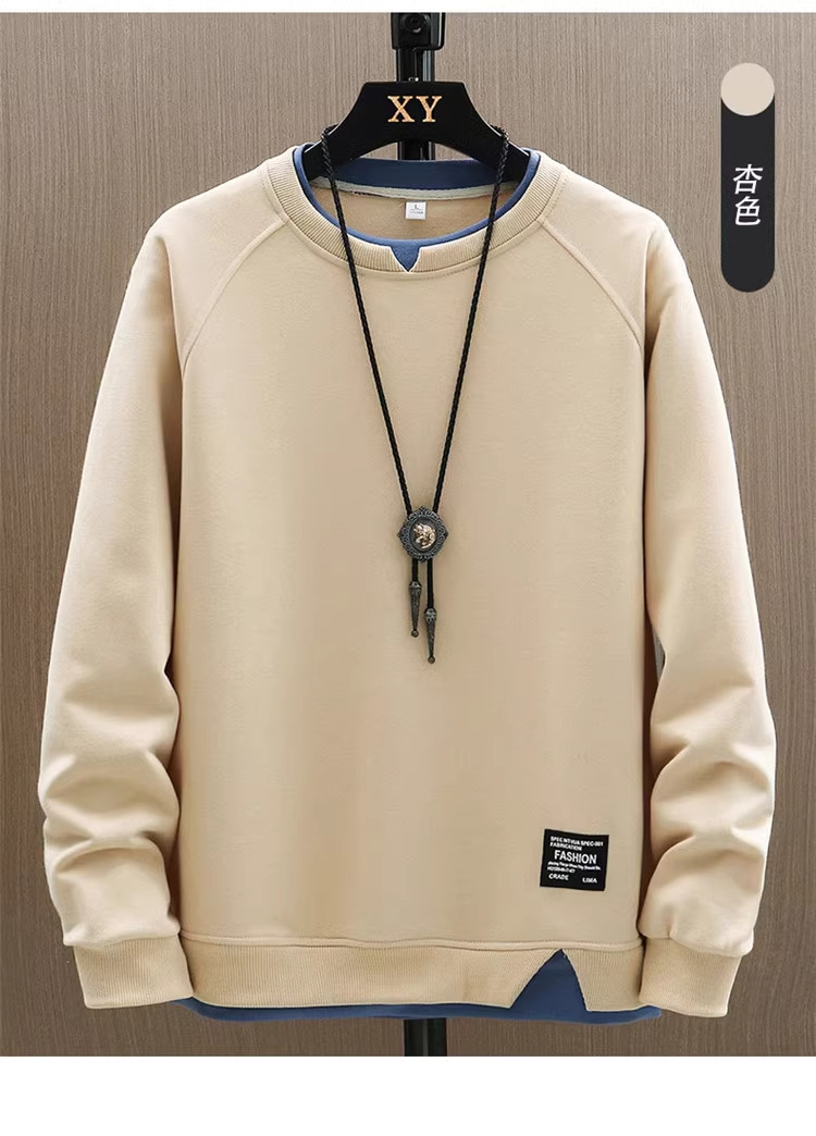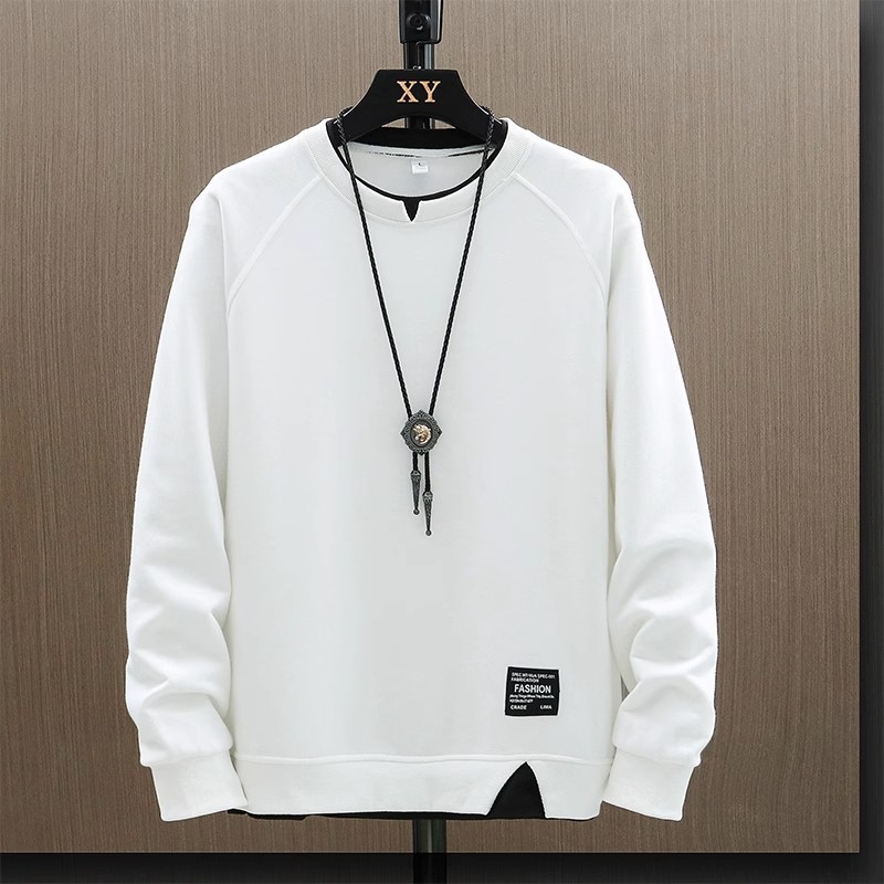 스웨터 남자 봄과 가을 2024 새로운 패션 브랜드 캐주얼 가짜 투피스 긴팔 티셔츠 남성용 탑 옷베이스 셔츠