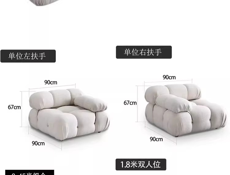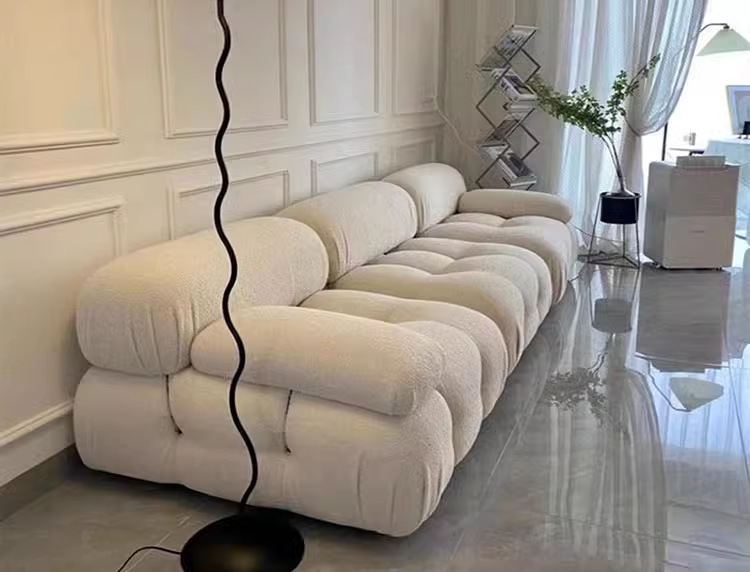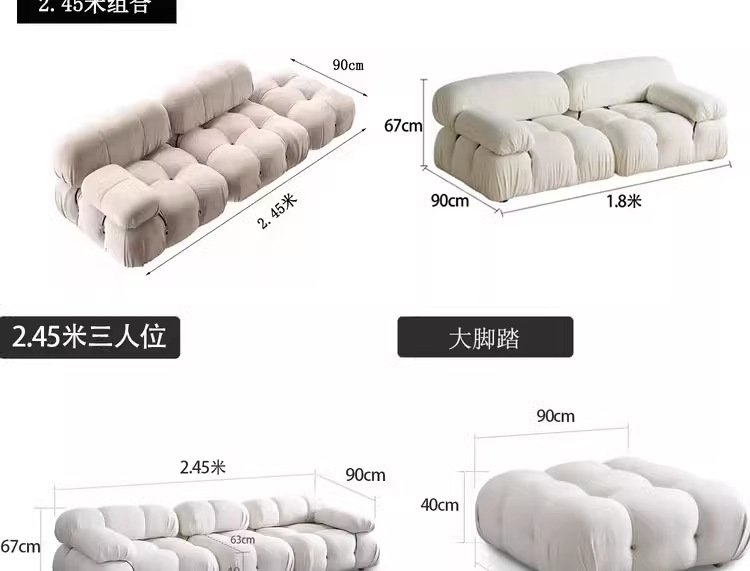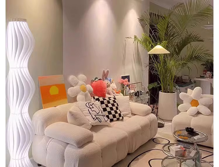 크림 스타일 프렌치 거실 작은 아파트 클라우드 모듈 램스울 화이트 싱글 패브릭 더블 또는 3인용 빵 소파