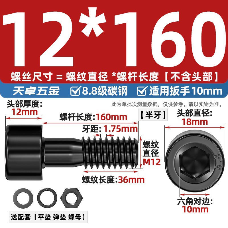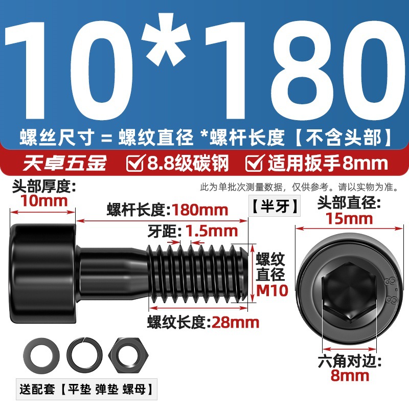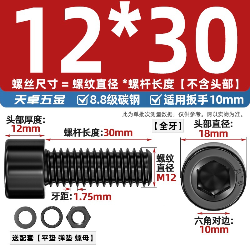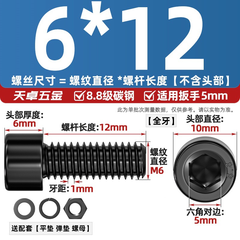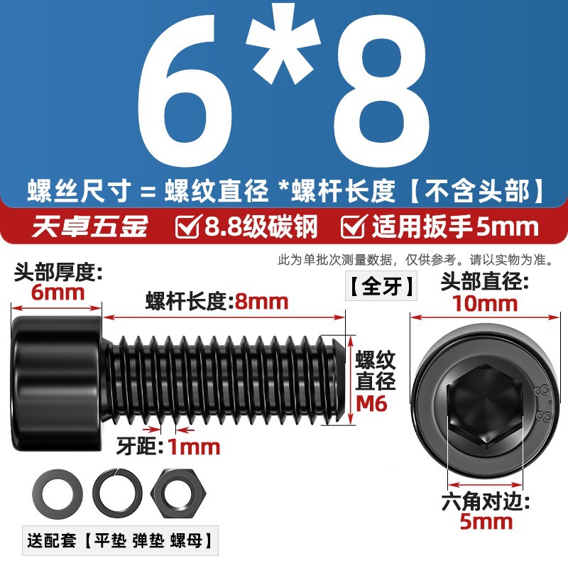 세트 블랙 8.8 클래스 컵 헤드 육각형 소켓 스크류 너트 플랫 스프링 와셔 볼트 M3M4M5M6M8M10-M24스토어 가기