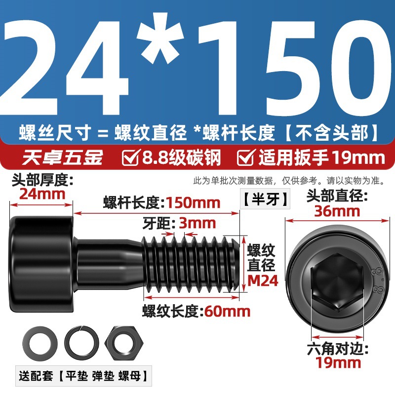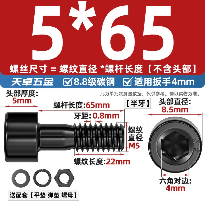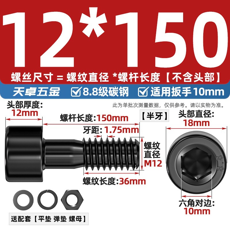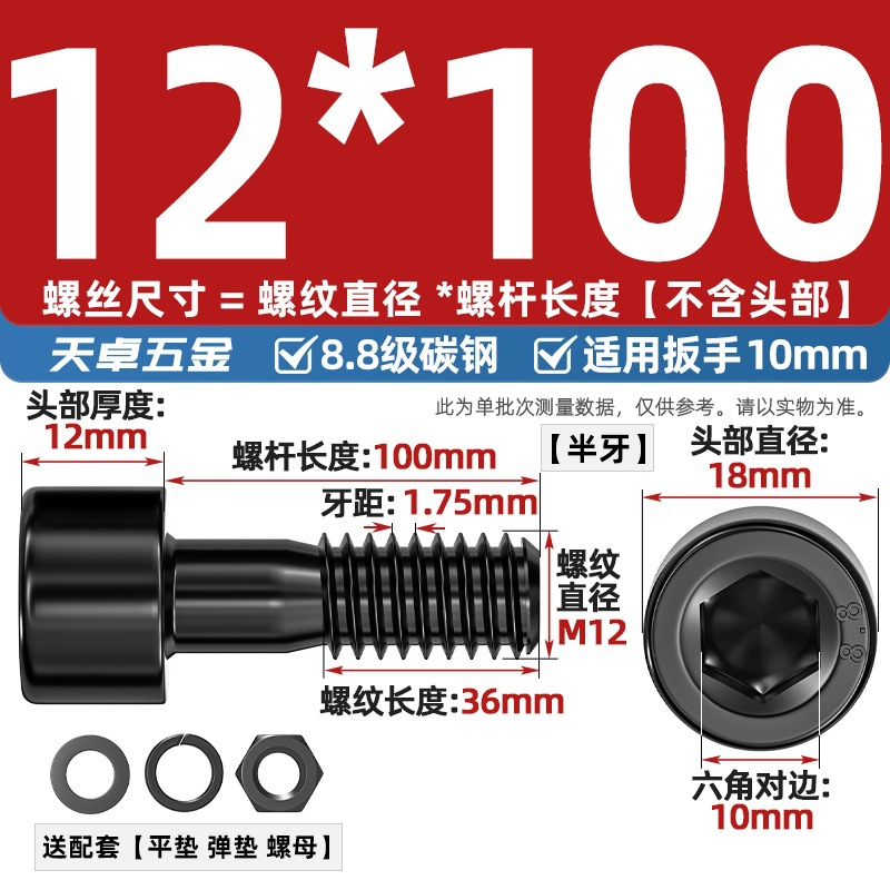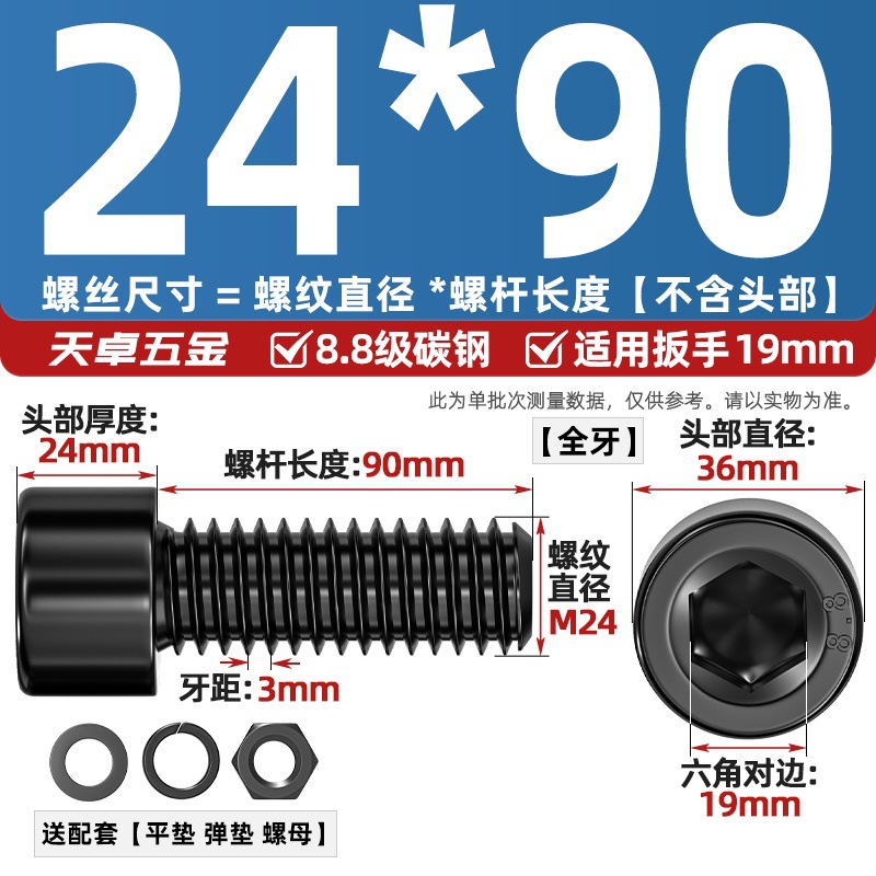 세트 블랙 8.8 클래스 컵 헤드 육각형 소켓 스크류 너트 플랫 스프링 와셔 볼트 M3M4M5M6M8M10-M24스토어 가기