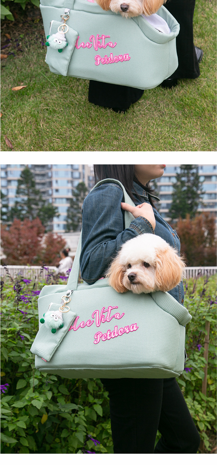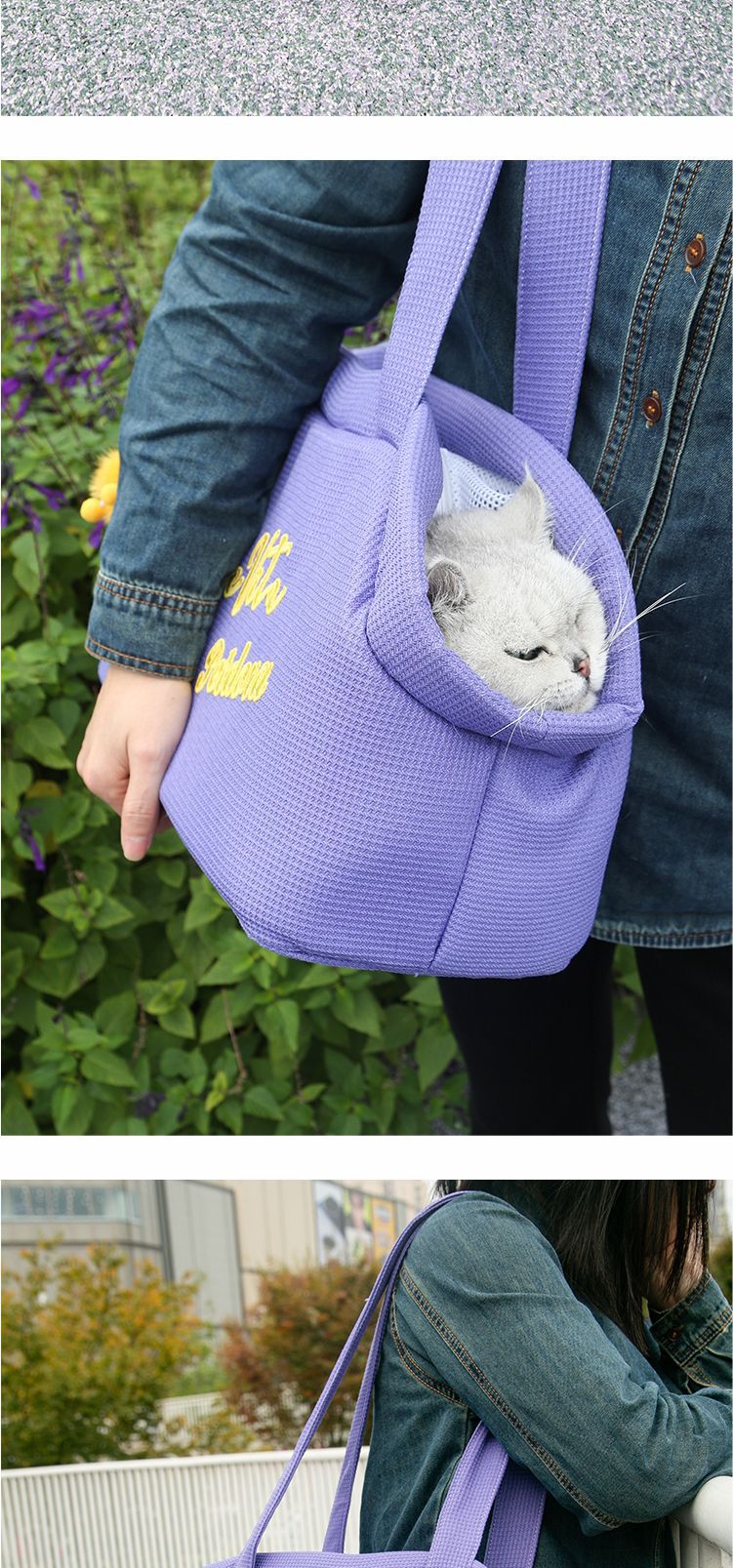 PETDORA 수 놓은 애완 동물 어깨 가방 새끼 고양이 강아지 외부 가방 경량 통기성 비상 방지 워킹 백스토어 가기