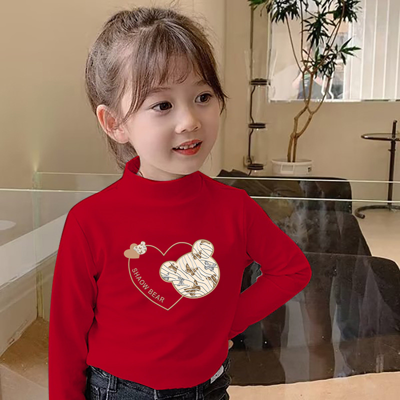 Y2279 # 어린이 아기 벨벳 티셔츠베이스 셔츠 봄, 가을, 겨울 세미 하이 칼라 내복 소녀 긴팔 티셔츠스토어 가기