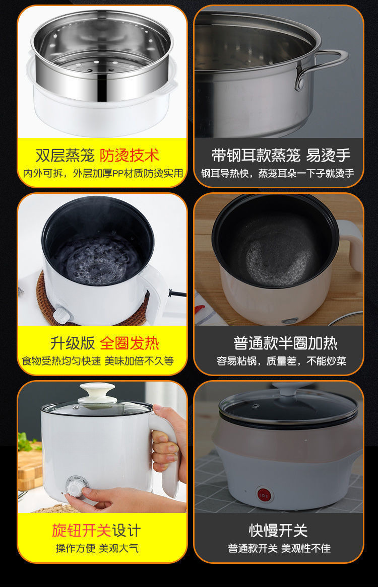 전기 요리 냄비 기숙사 학생 냄비 1 인 작은 뜨거운 냄비 다기능 미니 요리 국수 가정용 전기 냄비