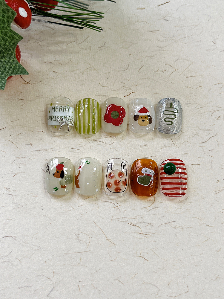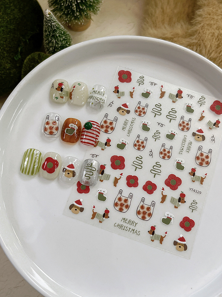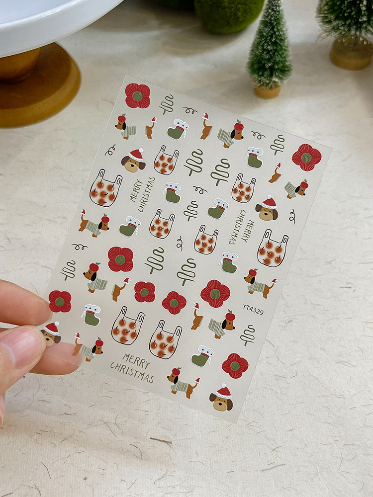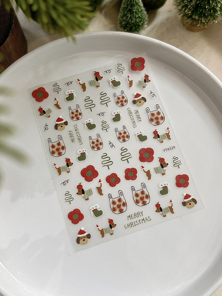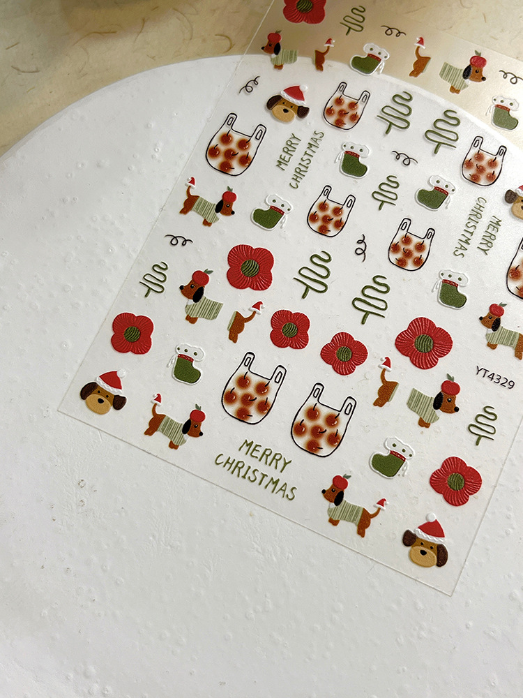 YITU 개미 그림 양각 크리스마스 작은 붉은 꽃 네일 아트 스티커 접착제 네일 장식 스티커 YT4329 강아지 양말
