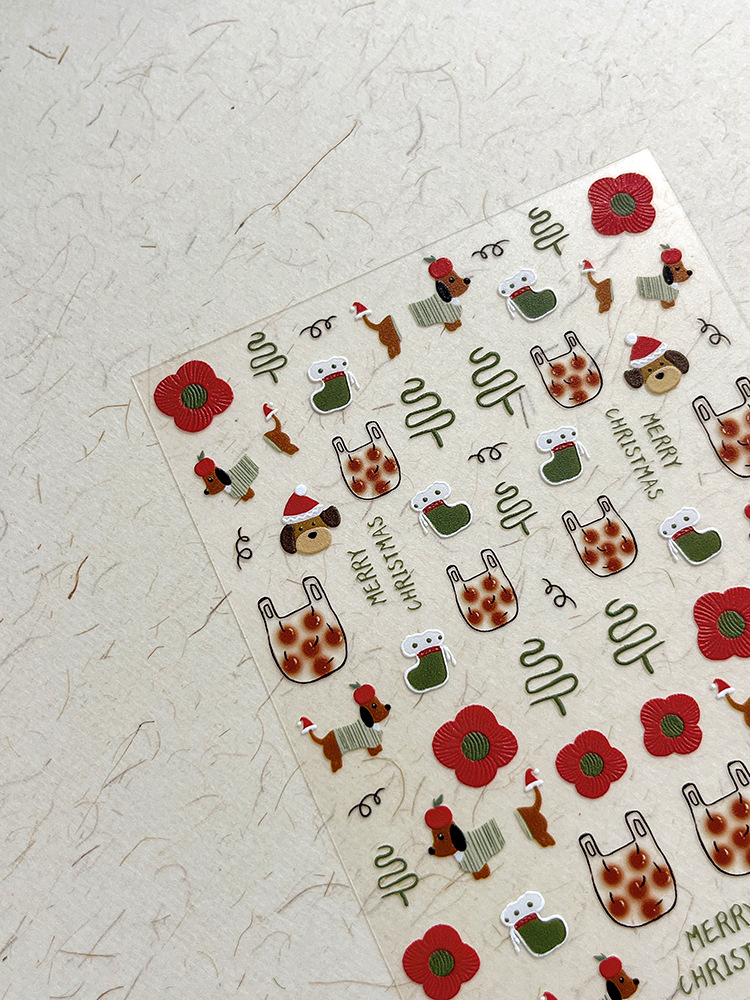 YITU 개미 그림 양각 크리스마스 작은 붉은 꽃 네일 아트 스티커 접착제 네일 장식 스티커 YT4329 강아지 양말스토어 가기