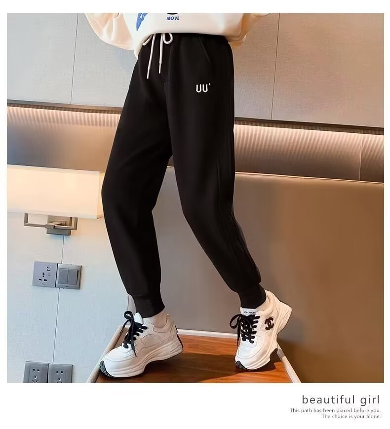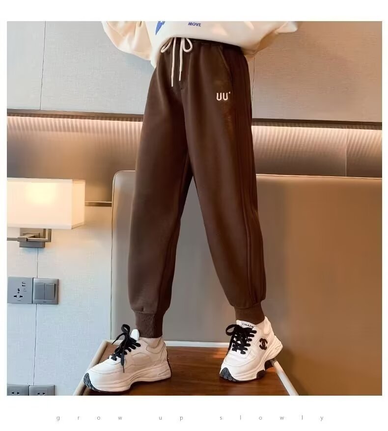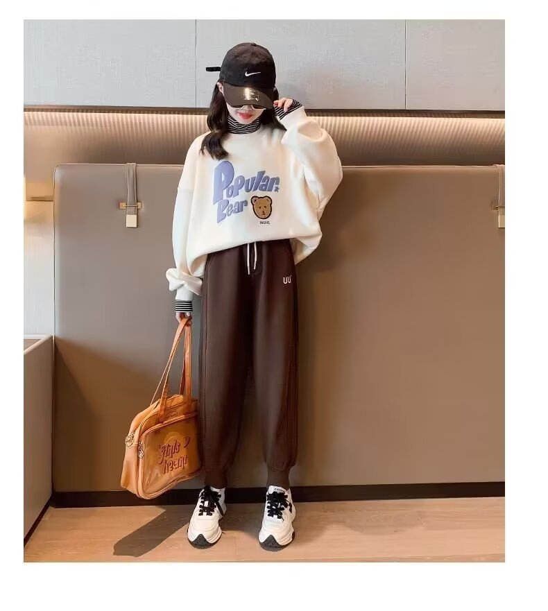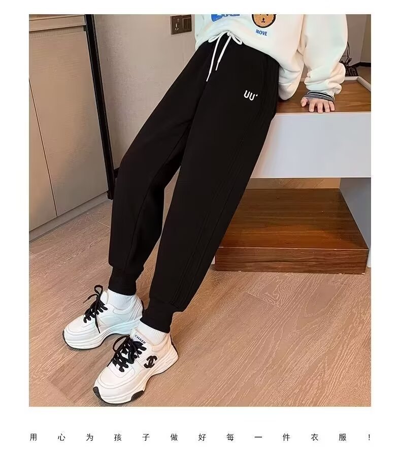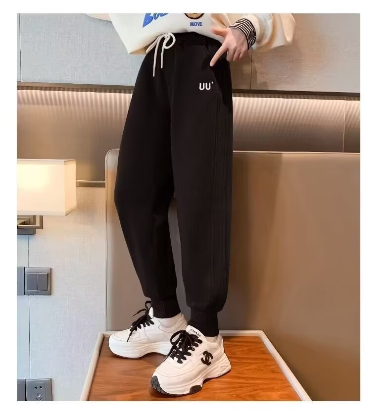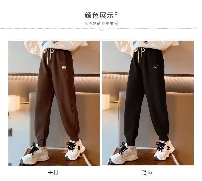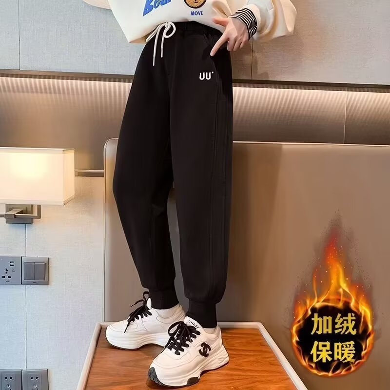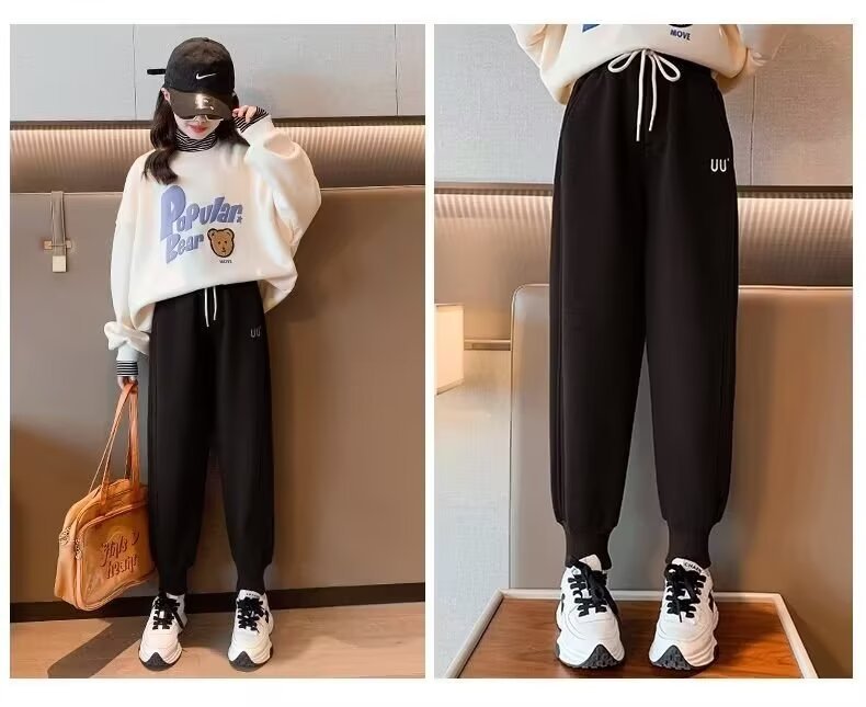 소녀 바지 가을과 겨울 2024 새로운 어린이 서양식 겨울 외복 스웨트 바지 기모 두꺼운 원피스 벨벳 바지