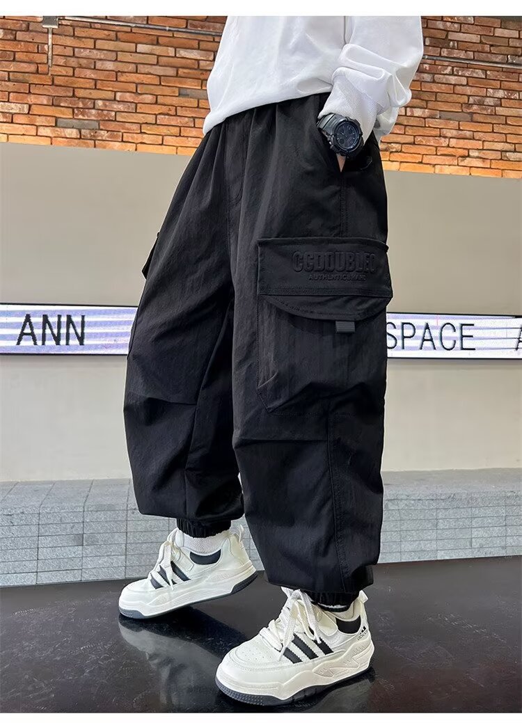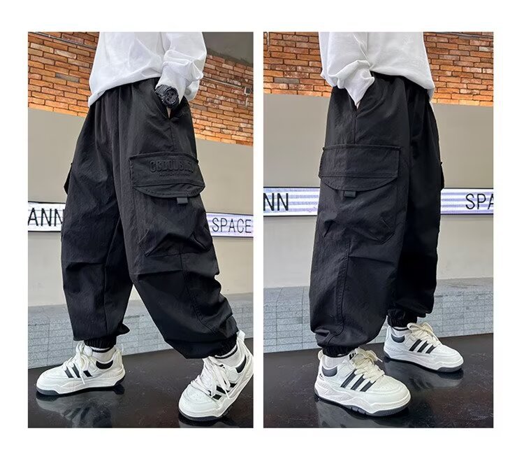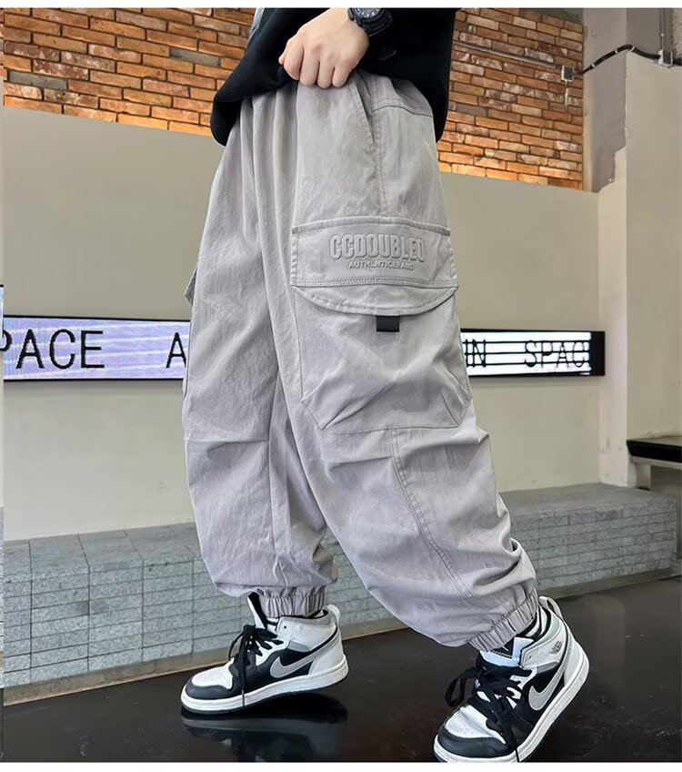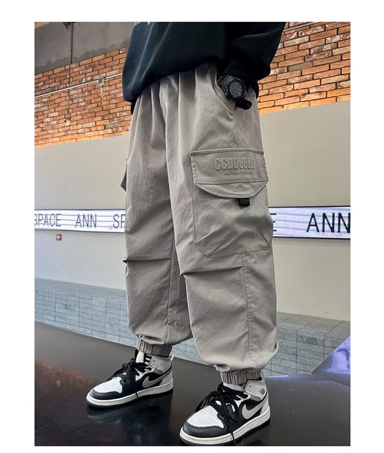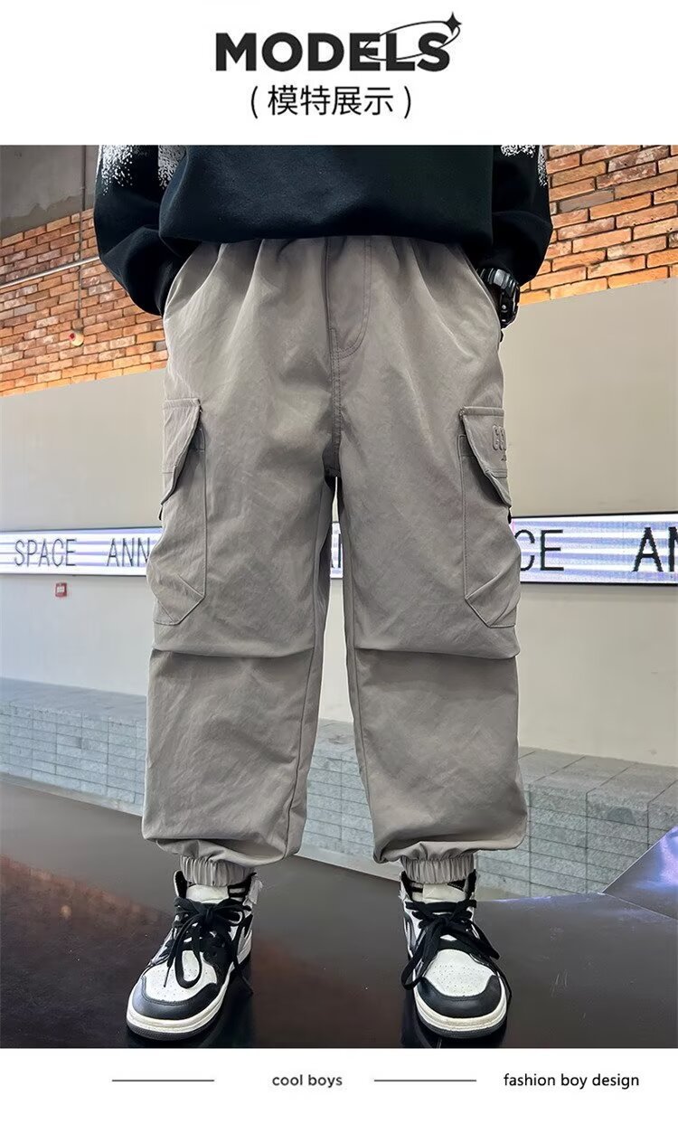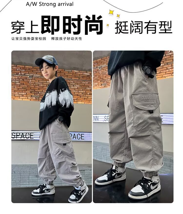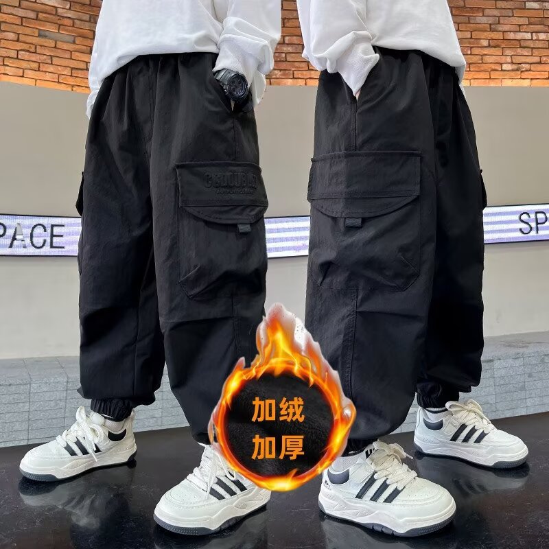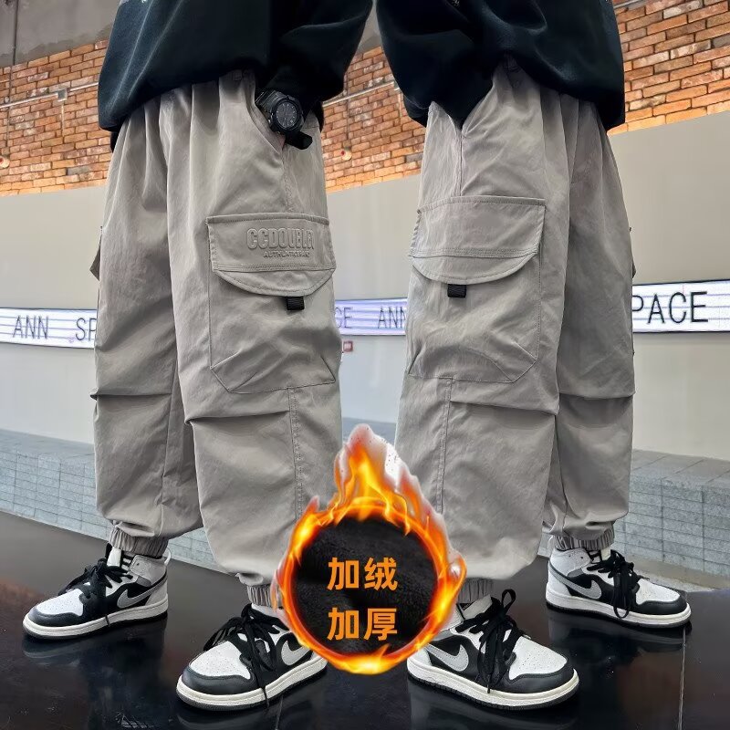 소년 바지 가을/겨울 기모 2024 새로운 큰 어린이 봄 캐주얼 거리 바지 어린이 유행 두꺼운 작업 바지스토어 가기