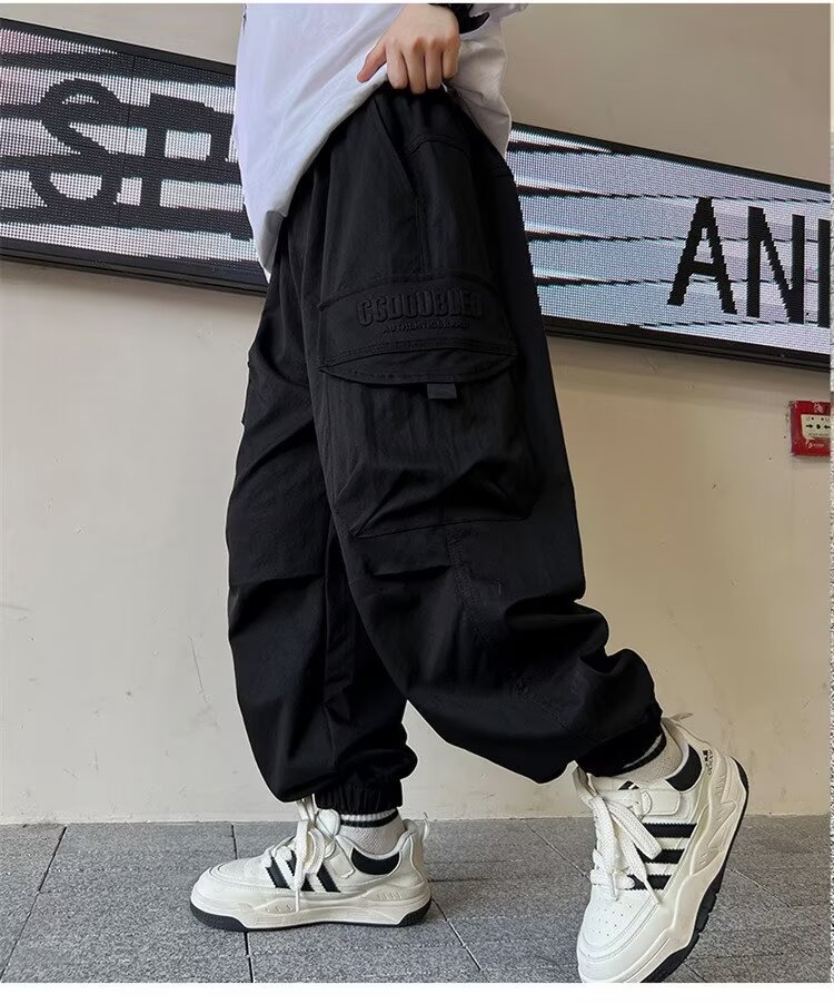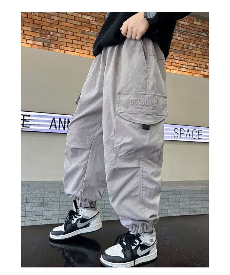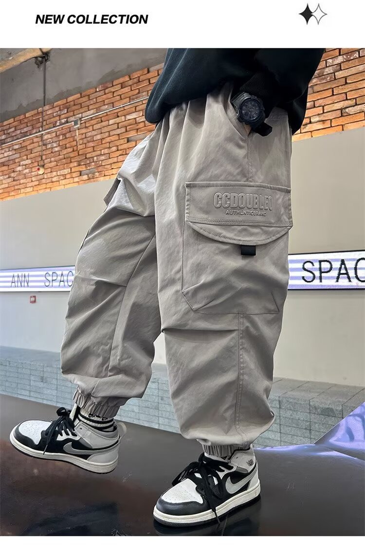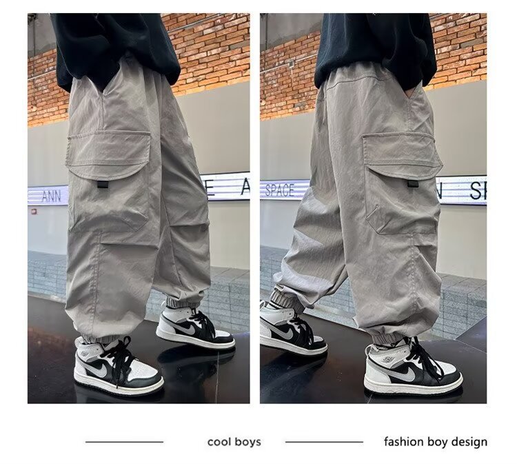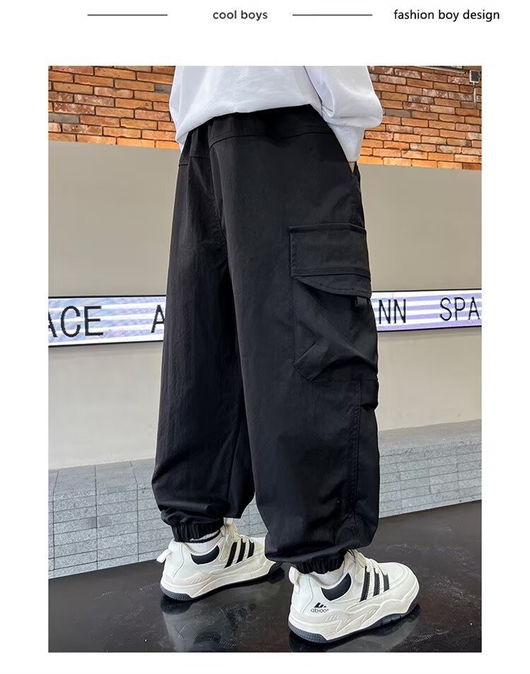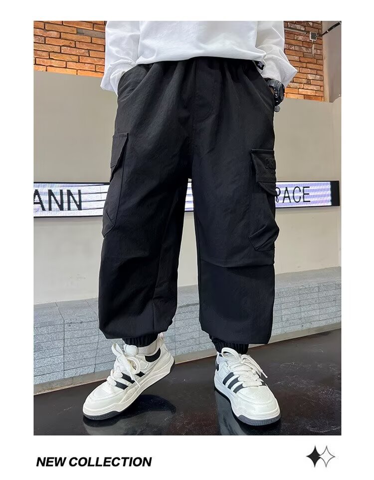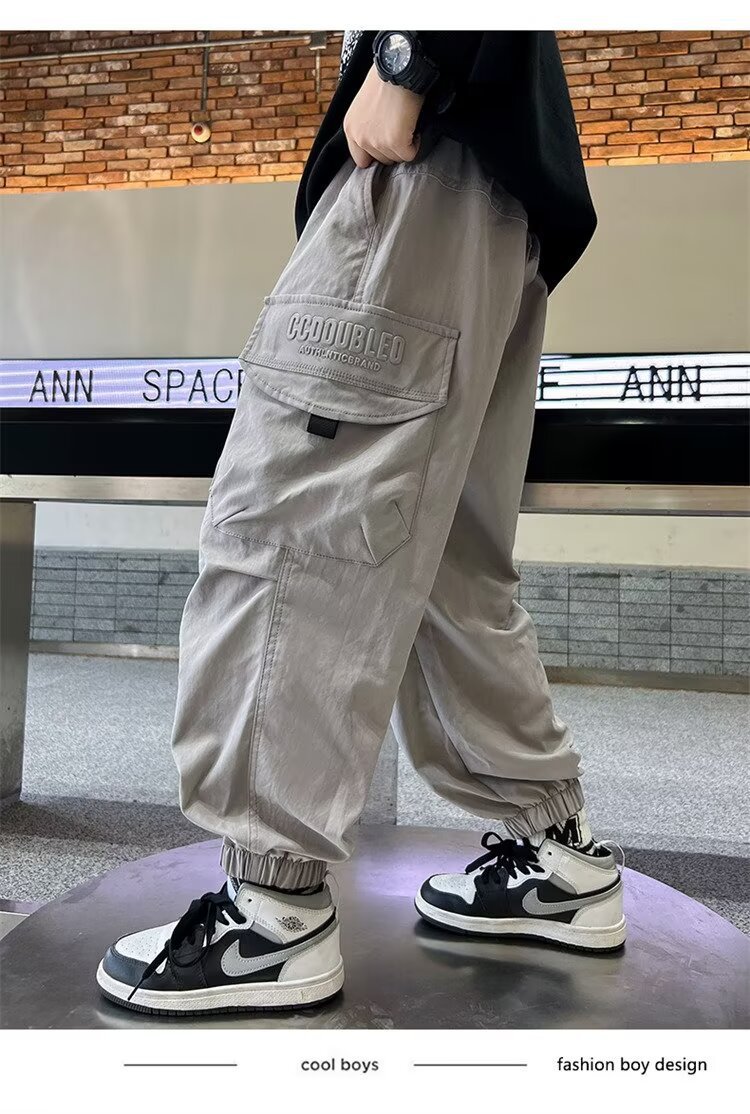소년 바지 가을/겨울 기모 2024 새로운 큰 어린이 봄 캐주얼 거리 바지 어린이 유행 두꺼운 작업 바지스토어 가기