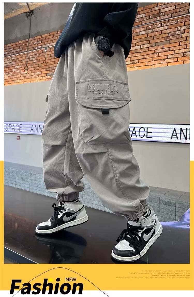 소년 바지 가을/겨울 기모 2024 새로운 큰 어린이 봄 캐주얼 거리 바지 어린이 유행 두꺼운 작업 바지