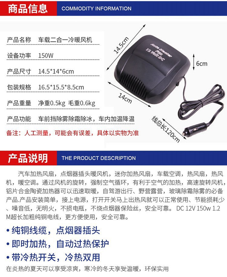 차 히터 12V/24V 차 앞 유리 차 난방 해동 찬 공기 뜨거운 공기 공장 직접 판매스토어 가기