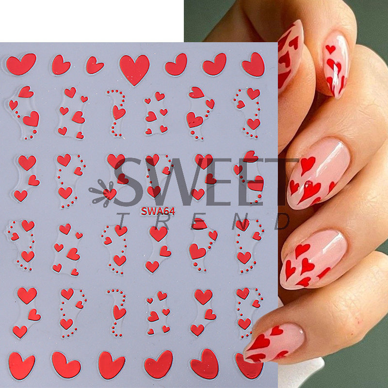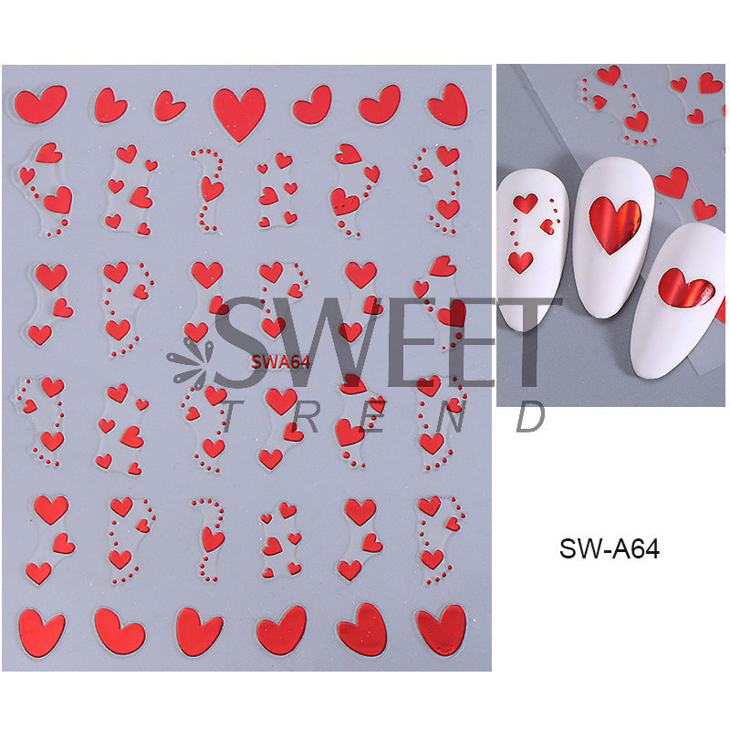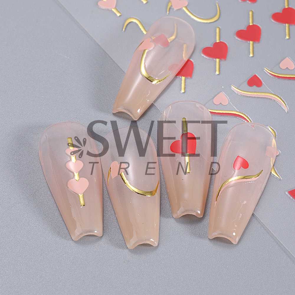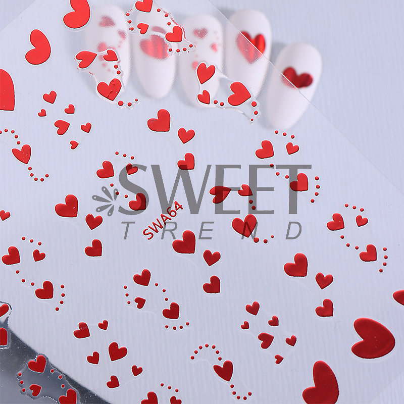 국경 간 핫 네일 아트 스티커 Ins 스타일 간단한 유럽과 미국의 발렌타인 데이 러브 플래티넘 레드 러브 네일 스티커