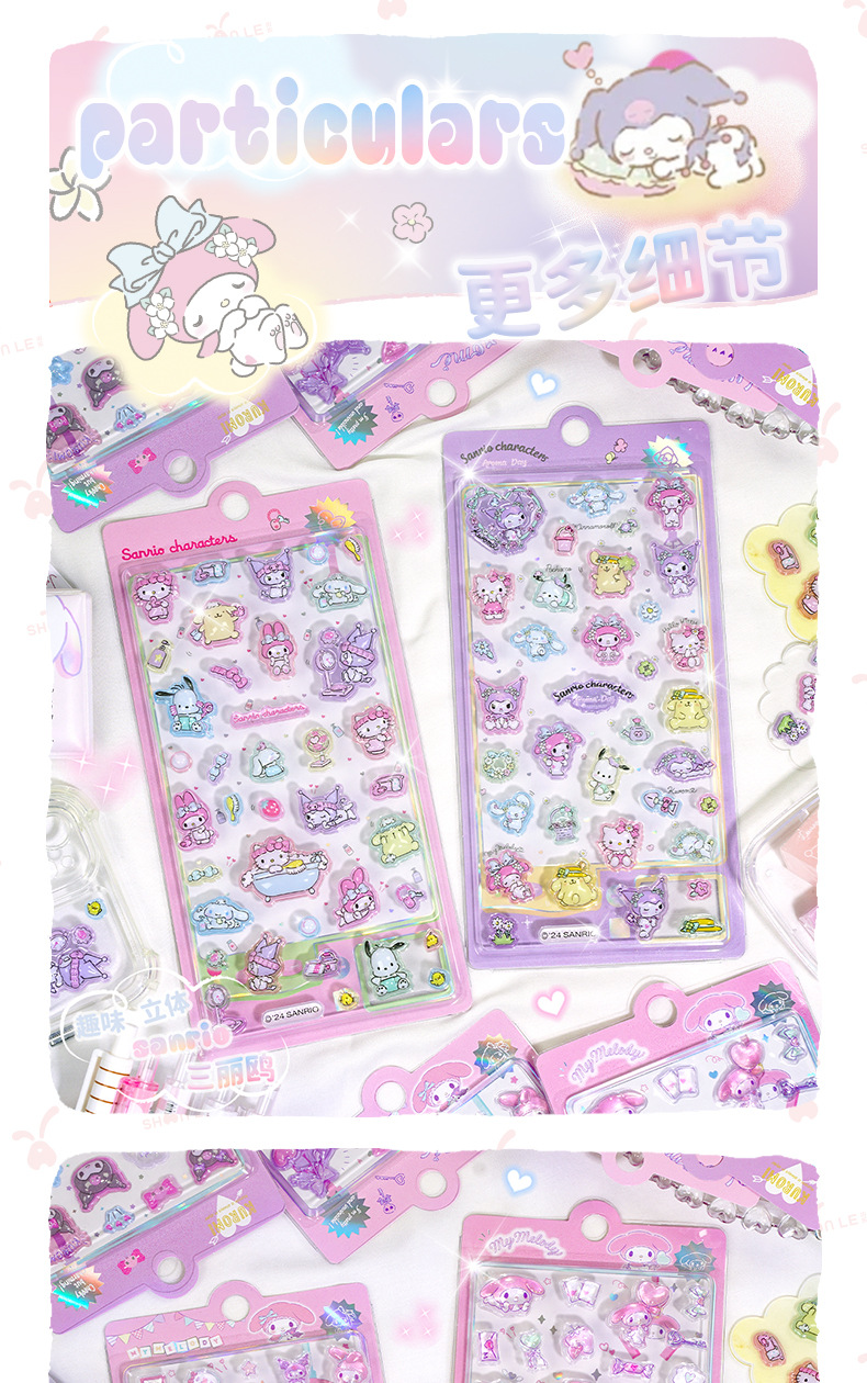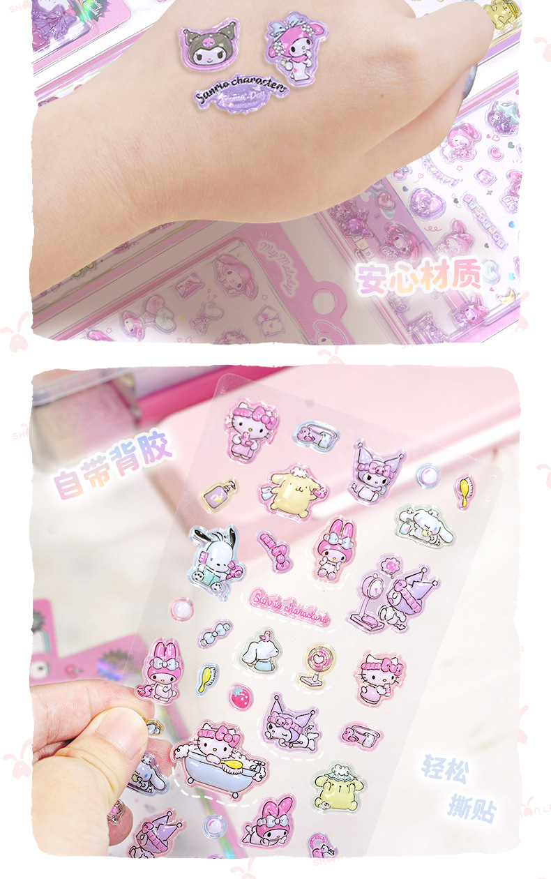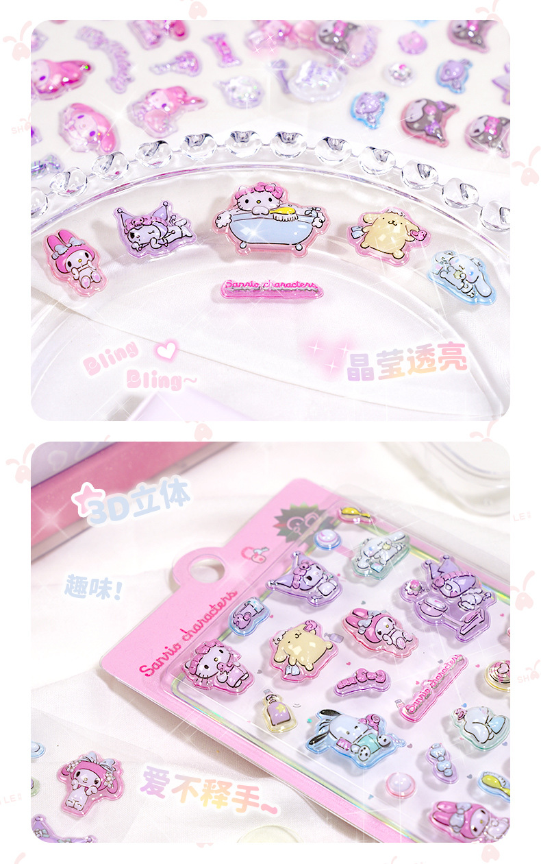 정품 산리오 3D 구호 재미 스티커 아크릴 다이아몬드 스티커 어린이 수제 DIY 장식 스티커 아름다운