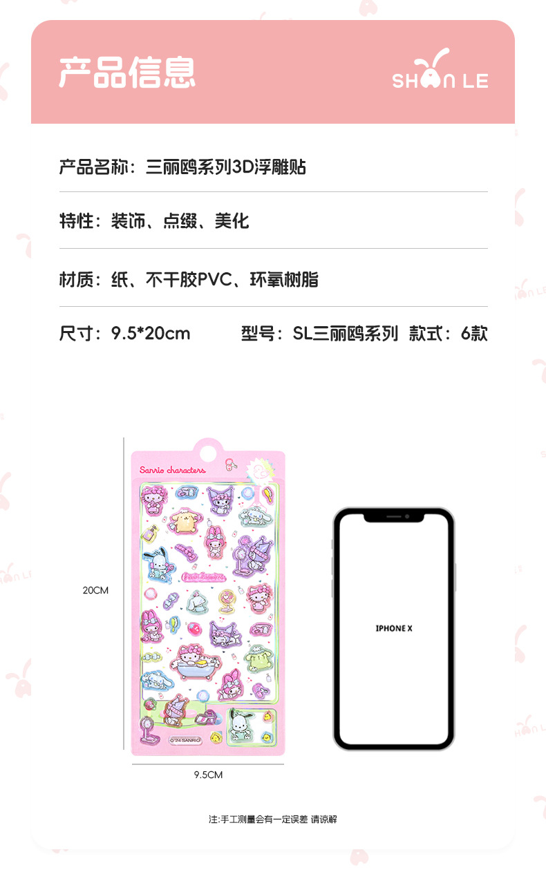 • SL-BDT 산리오 엠보싱 스티커 랜덤