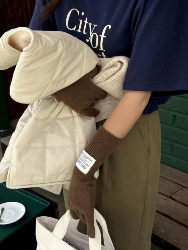 한국 스타일 2025 단색 울 혼방 니트 장갑 인스타 블로거 오픈 핑거 터치스크린 학생용 보온 장갑스토어 가기