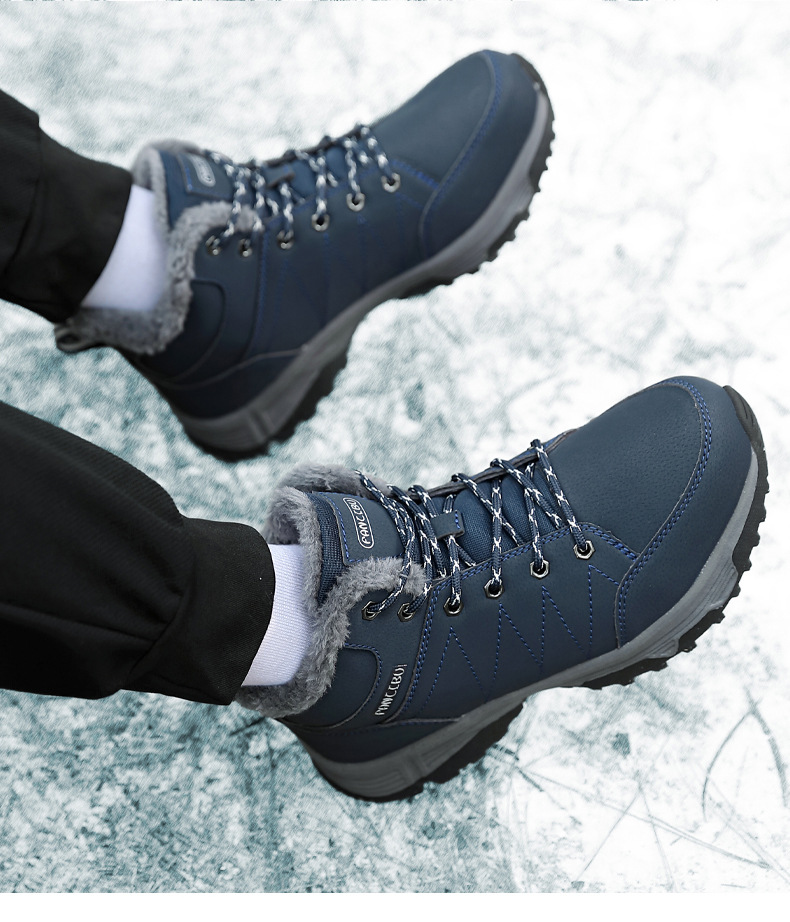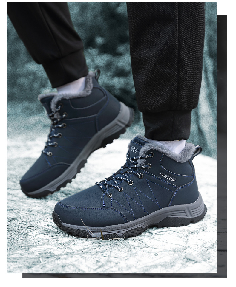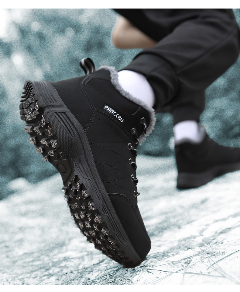 남성용 겨울 스포츠 야외 스노우 부츠 기모 따뜻한 코튼 신발 방풍 레이스 업 착용 방지 야외 등산 신발